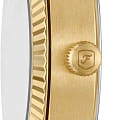 Часы Fossil ES5338 - это стильный аксессуар, который станет ярким дополнением к вашему повседневному или вечернему образу. Эти наручные часы выделяются своим утонченным дизайном и высоким качеством исполнения. Корпус изготовлен из стали с золотистым IP-покрытиемIP-покрытиеМетод ионного напыления. Демонстрирует повышенную устойчивость к истиранию, окислению и химическим веществам. Под воздействием высокого давления и температуры около 1500°C молекулы металла надёжно соединяются с частицами корпуса часов., что придаёт ему долговечность и изысканный внешний вид. Циферблат золотистого цвета, выполненный по технологии Sunray, украшен кристаллами, которые добавляют ему блеска и элегантности. Часы снабжены римскими цифрами VI и XII, а также метками в виде точек, что делает их не только красивыми, но и функциональными. Удобное окошко даты с увеличительным стеклом расположено в положении 3 часа, облегчая считывание информации. Особое внимание привлекает рифленый безельБезельВнешний ободок, закрепляющий стекло. В спортивных часах так называется поворотное кольцо с делениями на циферблате, выполняет роль таймера – замеряет отрезки времени на шкале. Неподвижный безель – элемент декора. Однонаправленно вращающийся безель на дайверских часах позволяет фиксировать моменты погружения и выныривания на поверхность. с золотистым IP-покрытиемIP-покрытиеМетод ионного напыления. Демонстрирует повышенную устойчивость к истиранию, окислению и химическим веществам. Под воздействием высокого давления и температуры около 1500°C молекулы металла надёжно соединяются с частицами корпуса часов..  Люминесцентное покрытиеЛюминесцентное покрытиеПозволяет считывать показания времени в темноте. Производители наносят на стрелки, часовые индексы, безель или поверхность циферблата светонакопительный состав, дающий холодное свечение. на стрелках и метках обеспечивает отличную видимость в темноте. Заводная головка имеет рифленую поверхность, что позволяет легко настраивать время. Браслет из полированной стали с IP-покрытиемIP-покрытиеМетод ионного напыления. Демонстрирует повышенную устойчивость к истиранию, окислению и химическим веществам. Под воздействием высокого давления и температуры около 1500°C молекулы металла надёжно соединяются с частицами корпуса часов. и раскладной застёжкойРаскладная застёжкаТакой тип застёжки используется только на браслетах из металла. Она никогда не раскрывается полностью, происходит разделение на 2 и более частей. Раскладывающая застёжка снизит вероятность потери часов к минимуму. обеспечивает комфортное ношение и надежную фиксацию на запястье. Водозащита 50WR защищает механизм от случайных брызг. Минеральное стеклоМинеральное стеклоМинеральное стекло представляет собой искусственно выращенный минерал кварца. Такое стекло отличается особой устойчивостью к повреждениям и царапинам. Уступает по некоторым качествам сапфировому стеклу. защищает циферблат от повреждений. Часы имеют компактные размеры: диаметр корпуса составляет 32 мм, ширина браслета - 16 мм, а его длина - 175 мм. Этот аксессуар от Fossil подчеркнёт вашу индивидуальность и станет верным спутником в любых ситуациях.