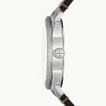 Мужские наручные часы Fossil Machine FS5920. Кварцевый механизм с высокой точностью. Минеральное стеклоМинеральное стеклоМинеральное стекло представляет собой искусственно выращенный минерал кварца. Такое стекло отличается особой устойчивостью к повреждениям и царапинам. Уступает по некоторым качествам сапфировому стеклу. устойчивое к появлению царапин, обладающее высокой прозрачностью. Стрелки с люминесцентным покрытиемЛюминесцентное покрытиеПозволяет считывать показания времени в темноте. Производители наносят на стрелки, часовые индексы, безель или поверхность циферблата светонакопительный состав, дающий холодное свечение. Класс водозащиты: 50 метров, позволит защитить корпус от случайных брызг или капель дождя. Корпус часов изготовлен из стали серебристого цвета. Рифленая заводная головка. На циферблате расположены метки в виде штрихов и окошко даты и дня недели в положении 3 часа. Кожаный ремешок с классической застежкой.