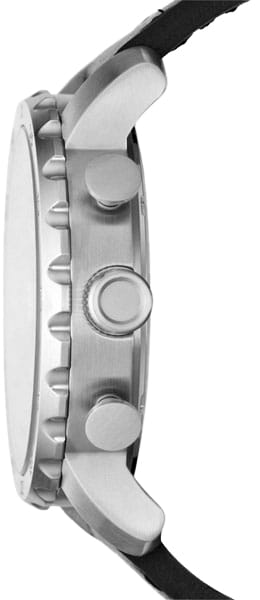 Наручные часы-хронографХронографФункция позволяет измерять отрезки времени с особой точностью: часы, минуты, секунды. Верным признаком хронографа является наличие на циферблате 3 дополнительных окошек-счётчиков. Fossil Nate Chronograph JR1436. Корпус часов изготовлен из нержавеющей стали. Минеральное стеклоМинеральное стеклоМинеральное стекло представляет собой искусственно выращенный минерал кварца. Такое стекло отличается особой устойчивостью к повреждениям и царапинам. Уступает по некоторым качествам сапфировому стеклу. устойчивое к появлению царапин, обладающее высокой прозрачностью. Стрелки и метки с люминесцентным покрытиемЛюминесцентное покрытиеПозволяет считывать показания времени в темноте. Производители наносят на стрелки, часовые индексы, безель или поверхность циферблата светонакопительный состав, дающий холодное свечение.. Кожаный ремешок. Водозащита: 50 метров, позволит защитить корпус от случайных брызг или капель дождя.