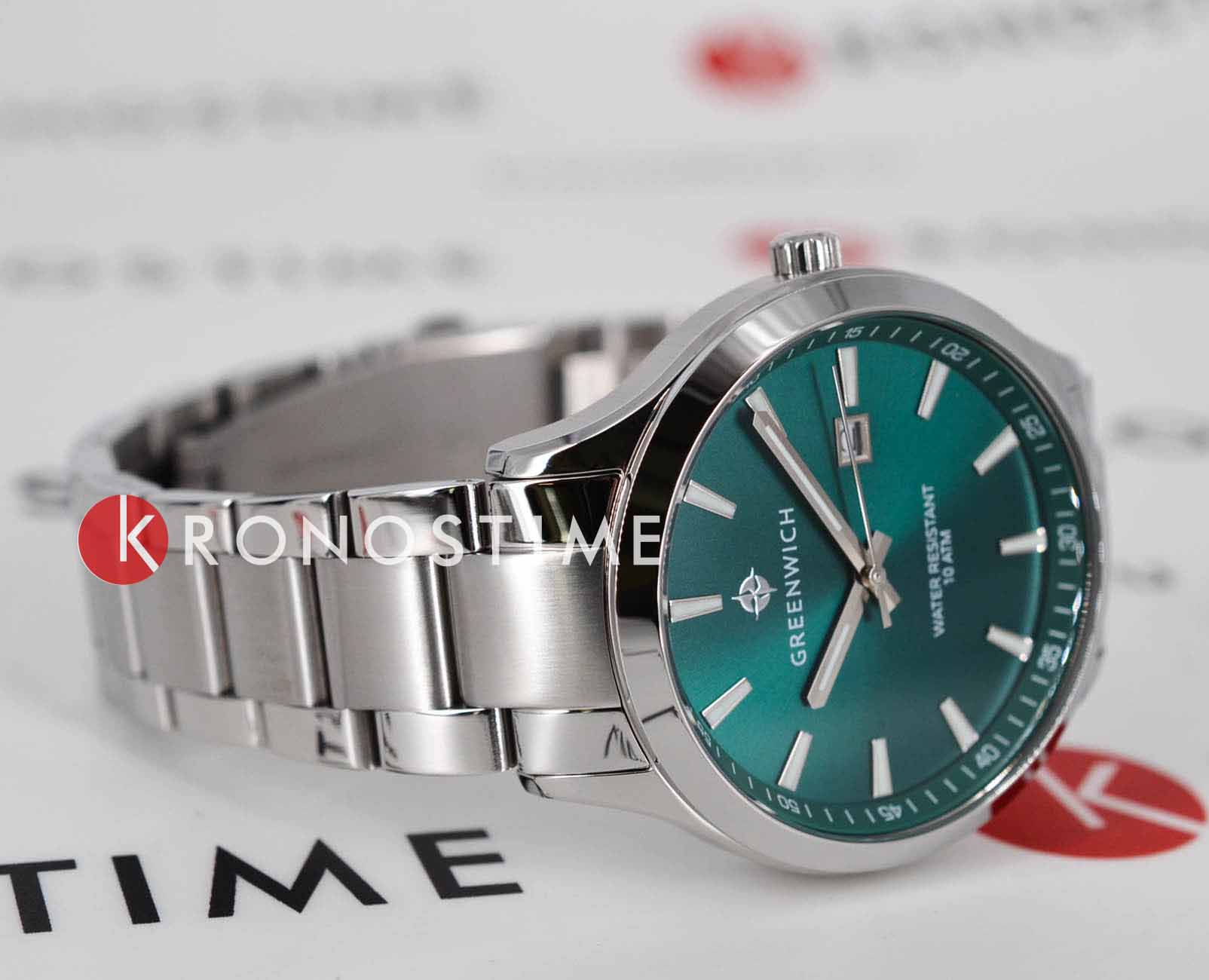 Мужские наручные часы Greenwich Helm GW 041.10.37 представляют собой классический вариант для повседневной носки. Корпус из нержавеющей стали диаметром 42 мм сбалансирован и элегантен. Минеральное стеклоМинеральное стеклоМинеральное стекло представляет собой искусственно выращенный минерал кварца. Такое стекло отличается особой устойчивостью к повреждениям и царапинам. Уступает по некоторым качествам сапфировому стеклу. защищает циферблат от царапин и обеспечивает отличную читаемость при любом освещении. Люминесцентное покрытиеЛюминесцентное покрытиеПозволяет считывать показания времени в темноте. Производители наносят на стрелки, часовые индексы, безель или поверхность циферблата светонакопительный состав, дающий холодное свечение. стрелок и меток позволит следить за временем даже в полной темноте. Стальной браслет на раскладной застёжкеРаскладная застёжкаТакой тип застёжки используется только на браслетах из металла. Она никогда не раскрывается полностью, происходит разделение на 2 и более частей. Раскладывающая застёжка снизит вероятность потери часов к минимуму. идеально дополняют дизайн часов, обеспечивая комфортное ношение. Окошко даты находится в положении 3 часа. Класс водозащиты: 100 метров, позволит плавать, нырять и заниматься другими водными видами спорта. Эмблема мореплавательского духа символизирует удачу, стремление достигнуть поставленной цели. Часы характеризуются традиционными формами, лаконичным исполнением, что делает модель элегантным дополнением к деловому костюму.