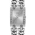 Яркий блестящий браслет с двумя линиями звеньев. Стальной корпус прямоугольной формы. Россыпь из кристаллов добавляет привлекательности стильному аксессуару. Аналоговый способ отображения времени. Оригинальный дизайн временных меток. Кварцевый механизм. Минеральное стекло. Водонепроницаемость в 10 WR.