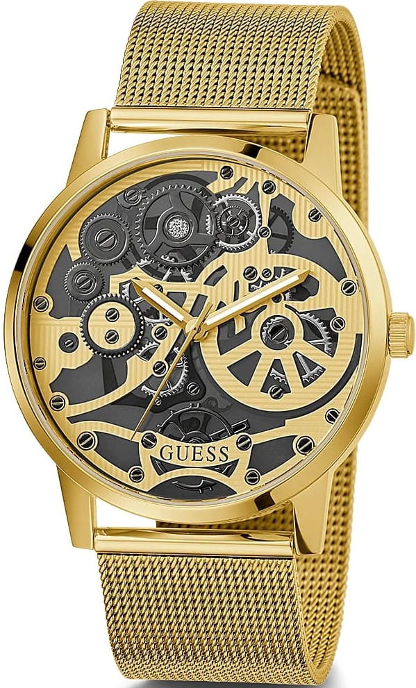 Мужские наручные часы с минеральным стекломМинеральное стеклоМинеральное стекло представляет собой искусственно выращенный минерал кварца. Такое стекло отличается особой устойчивостью к повреждениям и царапинам. Уступает по некоторым качествам сапфировому стеклу. Guess Gadget GW0538G2, кварцевый механизм с высокой точностью. Класс водозащиты: 50 метров, позволит защитить корпус от случайных брызг или капель дождя. Корпус часов изготовлен из стали с IP-покрытиемIP-покрытиеМетод ионного напыления. Демонстрирует повышенную устойчивость к истиранию, окислению и химическим веществам. Под воздействием высокого давления и температуры около 1500°C молекулы металла надёжно соединяются с частицами корпуса часов.. Стальной браслет на раскладной застёжкеРаскладная застёжкаТакой тип застёжки используется только на браслетах из металла. Она никогда не раскрывается полностью, происходит разделение на 2 и более частей. Раскладывающая застёжка снизит вероятность потери часов к минимуму. с IP-покрытиемIP-покрытиеМетод ионного напыления. Демонстрирует повышенную устойчивость к истиранию, окислению и химическим веществам. Под воздействием высокого давления и температуры около 1500°C молекулы металла надёжно соединяются с частицами корпуса часов..