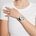 Женские наручные часы Guess Sport Steel GW0552L1 с минеральным стекломМинеральное стеклоМинеральное стекло представляет собой искусственно выращенный минерал кварца. Такое стекло отличается особой устойчивостью к повреждениям и царапинам. Уступает по некоторым качествам сапфировому стеклу., кварцевый механизм с высокой точностью. 24-х часовой формат времени, число и день недели отображаются на отдельных циферблатах. Стрелки и метки с люминесцентным покрытиемЛюминесцентное покрытиеПозволяет считывать показания времени в темноте. Производители наносят на стрелки, часовые индексы, безель или поверхность циферблата светонакопительный состав, дающий холодное свечение.. Класс водозащиты: 50 метров, позволит защитить корпус от случайных брызг или капель дождя. Корпус часов изготовлен из стали. БезельБезельВнешний ободок, закрепляющий стекло. В спортивных часах так называется поворотное кольцо с делениями на циферблате, выполняет роль таймера – замеряет отрезки времени на шкале. Неподвижный безель – элемент декора. Однонаправленно вращающийся безель на дайверских часах позволяет фиксировать моменты погружения и выныривания на поверхность. инкрустирован кристаллами. Браслет с раскладной застёжкойРаскладная застёжкаТакой тип застёжки используется только на браслетах из металла. Она никогда не раскрывается полностью, происходит разделение на 2 и более частей. Раскладывающая застёжка снизит вероятность потери часов к минимуму..