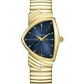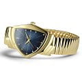 Hamilton Ventura Quartz H24301141 — легендарная модель с культовым дизайном в современном переосмыслении, сочетающая яркий стиль и швейцарскую точность. Корпус размером 32,3 × 50,3 мм выполнен из нержавеющей стали с жёлтым PVD-покрытиемPVDУльтратонкое покрытие наносится в технике вакуумного напыления, сочетает в себе нитрид титана особой прочности со слоем золота или оксида хрома. Несёт в себе декоративную или защитную функцию., подчеркивающим элегантность и винтажный дух модели. Циферблат защищён минеральным стекломМинеральное стеклоМинеральное стекло представляет собой искусственно выращенный минерал кварца. Такое стекло отличается особой устойчивостью к повреждениям и царапинам. Уступает по некоторым качествам сапфировому стеклу., устойчивым к повседневным воздействиям. Синий циферблат с солнечным узором украшен золотистыми стрелками и метками, а секундная стрелка с красным наконечником добавляет динамичный акцент. Механизм — швейцарский кварцевый калибр, обеспечивающий точное и надёжное отображение времени. Модель укомплектована гибким металлическим браслетом с жёлтым PVD-покрытиемPVDУльтратонкое покрытие наносится в технике вакуумного напыления, сочетает в себе нитрид титана особой прочности со слоем золота или оксида хрома. Несёт в себе декоративную или защитную функцию., обеспечивающей надёжную посадку и комфорт. Водонепроницаемость до 50 метров делает модель подходящей для повседневной носки. Ventura H24301141 — выбор для тех, кто ценит оригинальный силуэт, узнаваемый стиль и функциональность в одном корпусе.