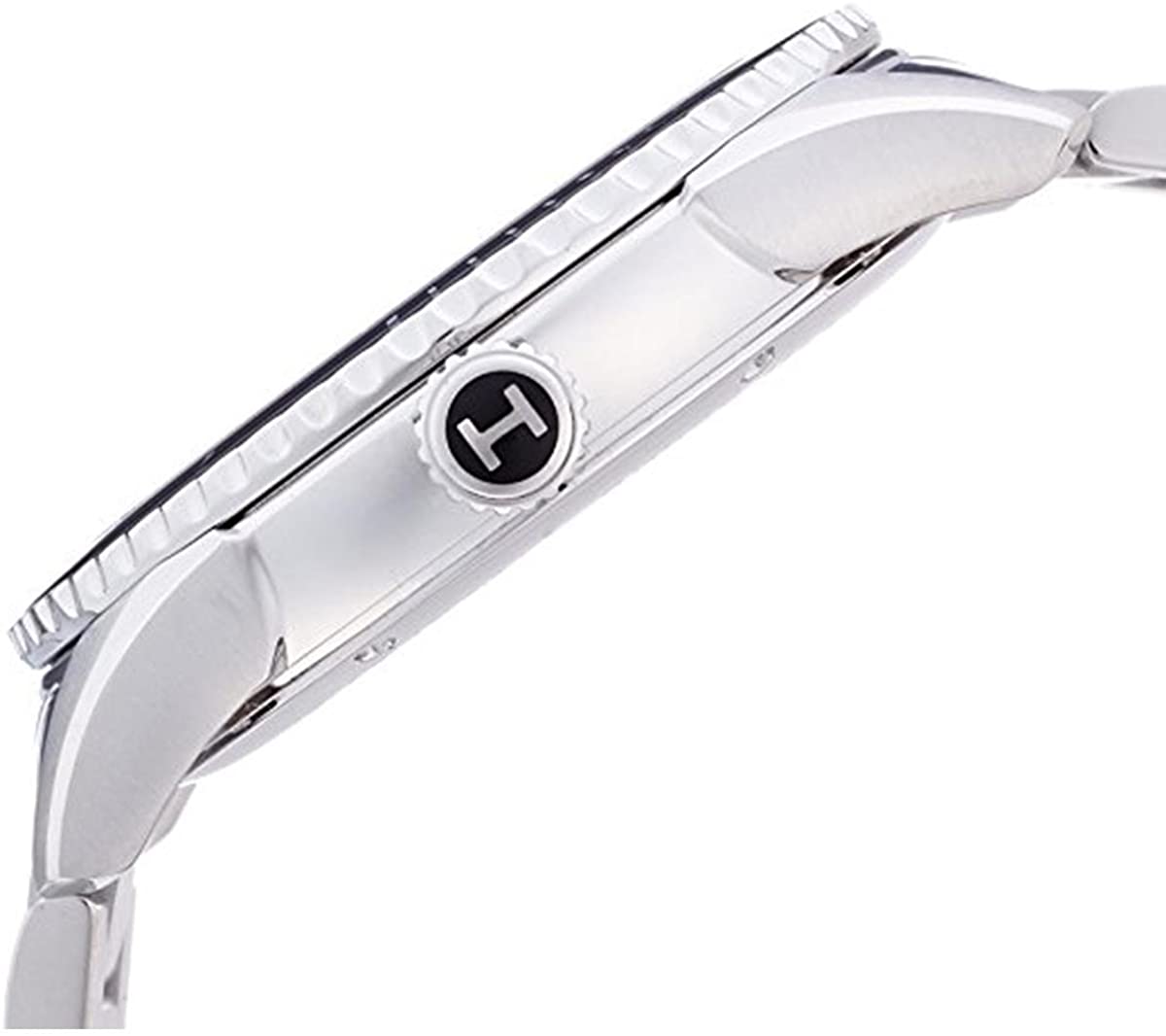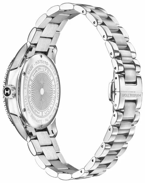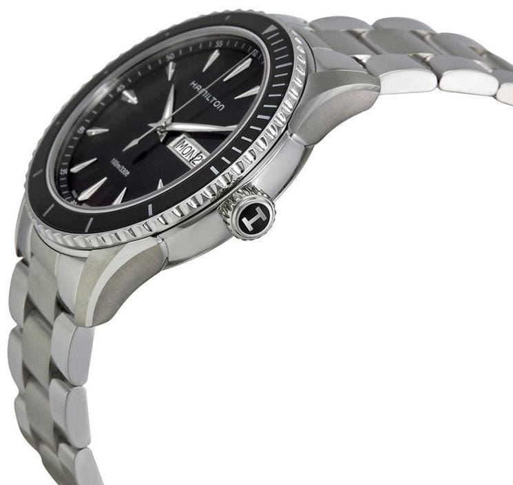 Мужские швейцарские часы Hamilton Jazzmaster Seaview Day Date Quartz H37511131, кварцевый механизм с высокой точностью. Сапфировое стеклоСапфировое стеклоПрочный и надёжный материал из кристалла сапфира синтетического происхождения, характеризующийся особой твёрдостью и устойчивостью к царапинам и повреждениям. устойчивое к появлению царапин, обладающее высокой прозрачностью. Класс водозащиты: 100 метров, позволит плавать, нырять и заниматься другими водными видами спорта. Корпус часов изготовлен из стали. Стрелки и метки с люминесцентным покрытиемЛюминесцентное покрытиеПозволяет считывать показания времени в темноте. Производители наносят на стрелки, часовые индексы, безель или поверхность циферблата светонакопительный состав, дающий холодное свечение.. Стальной браслет на застёжке-бабочке с кнопкамиЗастёжка "бабочка"Такой вид застёжки дополняется предохранителями, помогающими избежать случайного раскрытия браслета. Обладают изящным исполнением. .
