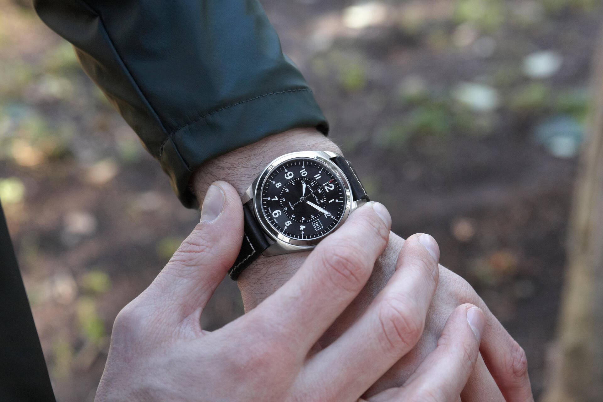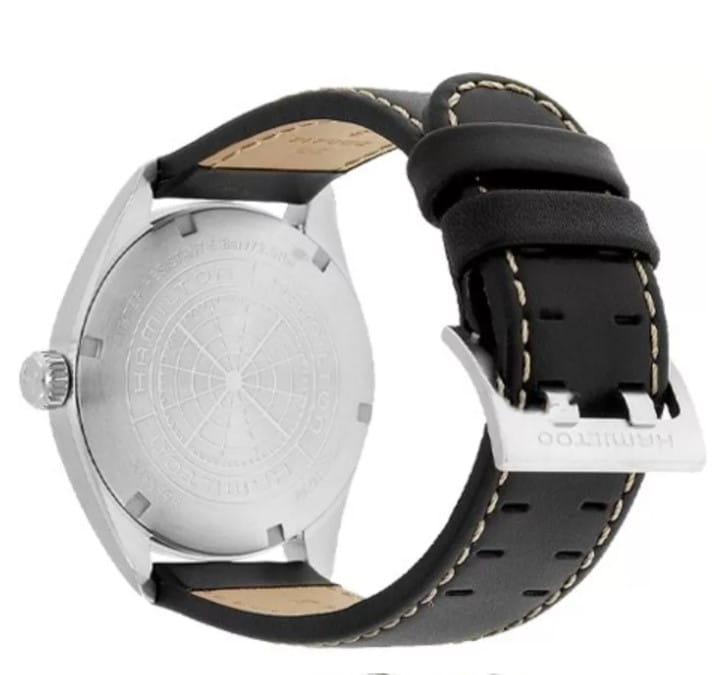 Мужские швейцарские кварцевые часы Hamilton Khaki Field Auto H68551733, кварцевый механизм с высокой точностью. Сапфировое стеклоСапфировое стеклоПрочный и надёжный материал из кристалла сапфира синтетического происхождения, характеризующийся особой твёрдостью и устойчивостью к царапинам и повреждениям. устойчивое к появлению царапин, обладающее высокой прозрачностью. Класс водозащиты: 50 метров, позволит защитить корпус от случайных брызг или капель дождя. Корпус часов изготовлен из стали. Стрелки и метки с люминесцентным покрытиемЛюминесцентное покрытиеПозволяет считывать показания времени в темноте. Производители наносят на стрелки, часовые индексы, безель или поверхность циферблата светонакопительный состав, дающий холодное свечение.. Кожаный ремешок.