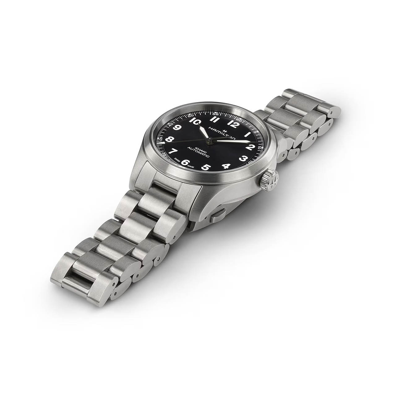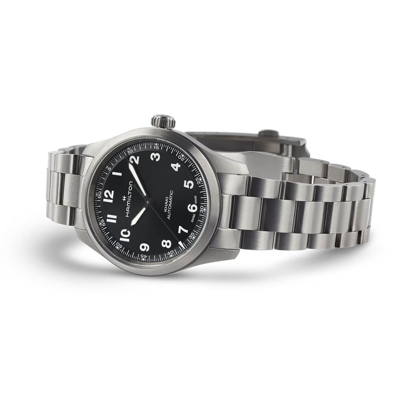 Мужские швейцарские часы Hamilton Khaki Field Titanium Auto 36mm Limited Edition Engineered Garments H70235130 представляют эксклюзивную коллаборацию с японским брендом Engineered Garments, выпущенную лимитированной серией в 1999 экземпляров в честь даты основания бренда-партнёра. Модель выполнена в облегчённом титановом корпусе диаметром 36 мм и толщиной 10.8 мм с матовой отделкой, сочетающейся с титановым браслетом и раскладывающейся застёжкой (16 мм). Чёрный циферблат с треугольными часовыми метками и люминесцентным покрытиемЛюминесцентное покрытиеПозволяет считывать показания времени в темноте. Производители наносят на стрелки, часовые индексы, безель или поверхность циферблата светонакопительный состав, дающий холодное свечение. Super-LumiNova обеспечивает превосходную видимость в темноте, дополнен сапфировым стекломСапфировое стеклоПрочный и надёжный материал из кристалла сапфира синтетического происхождения, характеризующийся особой твёрдостью и устойчивостью к царапинам и повреждениям. с антибликовым покрытием для повышенной прочности и чёткости показаний. Автоматический механизм Hamilton H-10 с инновационной пружиной баланса Nivachron™Nivachron™Специально разработанный инновационный сплав Nivachron™ повышает устойчивость часов к воздействию магнитных полей. гарантирует точность хода, устойчивость к магнитным полям и впечатляющий запас хода 80 часов. Часы оснащены прозрачной задней крышкой, демонстрирующей работу калибра, и обладают водонепроницаемостью до 10 бар (100 метров), что делает их надёжным спутником в экстремальных условиях.