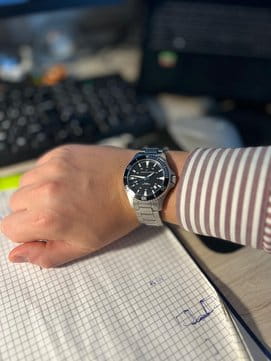 Мужские наручные часы Hamilton Khaki Navy Scuba Auto H82315131 сочетают в себе классический дизайн и надежность современных технологий. Модель обладает круглым корпусом диаметром 40 мм, изготовленным из нержавеющей стали 316L, что обеспечивает высокую устойчивость к внешним воздействиям. Корпус оснащен сапфировым стекломСапфировое стеклоПрочный и надёжный материал из кристалла сапфира синтетического происхождения, характеризующийся особой твёрдостью и устойчивостью к царапинам и повреждениям., защищающим циферблат от царапин и обеспечивающим антибликовый эффект. Часы работают на автоматическом калибре H-10 с запасом хода до 80 часов, что гарантирует точное время без необходимости подзаводки. Циферблат украшен индексами и стрелками с люминесцентным покрытиемЛюминесцентное покрытиеПозволяет считывать показания времени в темноте. Производители наносят на стрелки, часовые индексы, безель или поверхность циферблата светонакопительный состав, дающий холодное свечение., обеспечивающим видимость в темноте. Водонепроницаемость часов достигает 10 атмосфер (100 метров), что позволяет использовать их во время плавания и других водных видов спорта. Браслет выполнен из нержавеющей стали с раскладной застежкойРаскладной замокДанный вариант застежки используется только на часах с металлическим браслетом. Отличительная особенность такого крепления в том, что длина браслета становится универсальной и вы можете самостоятельно отрегулировать нужный вам размер – застежка просто двигается по браслету часов., гарантирующей комфортное ношение и безопасность