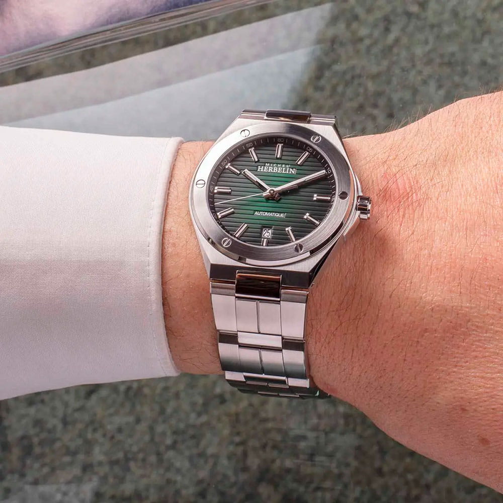 Мужские механические часы с автоподзаводом Herbelin Cap Camarat 1645B16 – отражающий идеальное сочетание современного дизайна, надёжности и функциональности. Элегантный облик станет превосходным завершением образа, наделив его индивидуальным характером. Корпус из нержавеющей стали серебристого цвета, диаметром 40.5 мм, идеально сбалансирован и элегантен. Сапфировое стеклоСапфировое стеклоПрочный и надёжный материал из кристалла сапфира синтетического происхождения, характеризующийся особой твёрдостью и устойчивостью к царапинам и повреждениям. защищает циферблат от царапин и устойчивое к механическим повреждениям. БезельБезельВнешний ободок, закрепляющий стекло. В спортивных часах так называется поворотное кольцо с делениями на циферблате, выполняет роль таймера – замеряет отрезки времени на шкале. Неподвижный безель – элемент декора. Однонаправленно вращающийся безель на дайверских часах позволяет фиксировать моменты погружения и выныривания на поверхность. украшен винтами, заводная головка с защитой. Окошко даты находится в положении 6 часов. Стрелки и метки с люминесцентным покрытиемЛюминесцентное покрытиеПозволяет считывать показания времени в темноте. Производители наносят на стрелки, часовые индексы, безель или поверхность циферблата светонакопительный состав, дающий холодное свечение.. Стальной браслет на застёжке-бабочке с кнопкамиЗастёжка "бабочка"Такой вид застёжки дополняется предохранителями, помогающими избежать случайного раскрытия браслета. Обладают изящным исполнением. обеспечивает комфортное ношение. Водозащита 100 метров позволит плавать, нырять и заниматься другими водными видами спорта. Эта модель – отличный выбор для тех, кто ищет сочетание стиля, качества и функциональности. Часы станут не только полезным аксессуаром, но и выразительным элементом вашего имиджа.