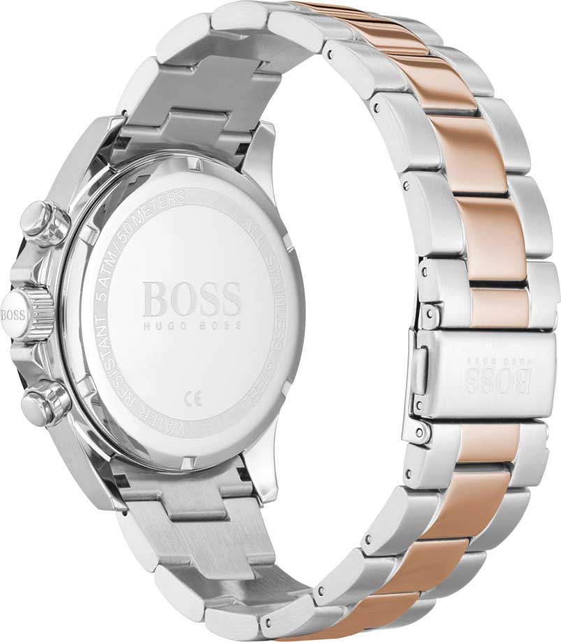 Мужские кварцевые часы Hugo Boss Hero HB1513757 представляют собой стильный хронографХронографФункция позволяет измерять отрезки времени с особой точностью: часы, минуты, секунды. Верным признаком хронографа является наличие на циферблате 3 дополнительных окошек-счётчиков. с круглым корпусом диаметром 43 мм из нержавеющей стали с частичным IP-покрытиемIP-покрытиеМетод ионного напыления. Демонстрирует повышенную устойчивость к истиранию, окислению и химическим веществам. Под воздействием высокого давления и температуры около 1500°C молекулы металла надёжно соединяются с частицами корпуса часов., дополненным черным циферблатом. Модель оснащена высокоточным кварцевым механизмом с функцией хронографаХронографФункция позволяет измерять отрезки времени с особой точностью: часы, минуты, секунды. Верным признаком хронографа является наличие на циферблате 3 дополнительных окошек-счётчиков., включая 60-минутный счетчик и индикацию даты. Циферблат защищен устойчивым к царапинам минеральным стекломМинеральное стеклоМинеральное стекло представляет собой искусственно выращенный минерал кварца. Такое стекло отличается особой устойчивостью к повреждениям и царапинам. Уступает по некоторым качествам сапфировому стеклу., а водонепроницаемость 5 ATM (50 метров) обеспечивает защиту от брызг и дождя. Стальной браслет с частичным IP-покрытиемIP-покрытиеМетод ионного напыления. Демонстрирует повышенную устойчивость к истиранию, окислению и химическим веществам. Под воздействием высокого давления и температуры около 1500°C молекулы металла надёжно соединяются с частицами корпуса часов. и раскладной застежкойРаскладная застёжкаТакой тип застёжки используется только на браслетах из металла. Она никогда не раскрывается полностью, происходит разделение на 2 и более частей. Раскладывающая застёжка снизит вероятность потери часов к минимуму. обеспечивает надежную посадку на запястье, а тахиметрическая шкалаТахиметрРазмеченная шкала, располагается на ободке или безеле часов. Тахиметр позволяет рассчитать скорость на определённом участке пути, расстояние измеряется в километрах или милях. на безеле позволяет производить расчеты скорости. Точность хода составляет ±15 секунд в месяц, что соответствует стандартам кварцевых механизмов. Дизайн модели сочетает спортивную функциональность с элегантным стилем, характерным для коллекции Hero.