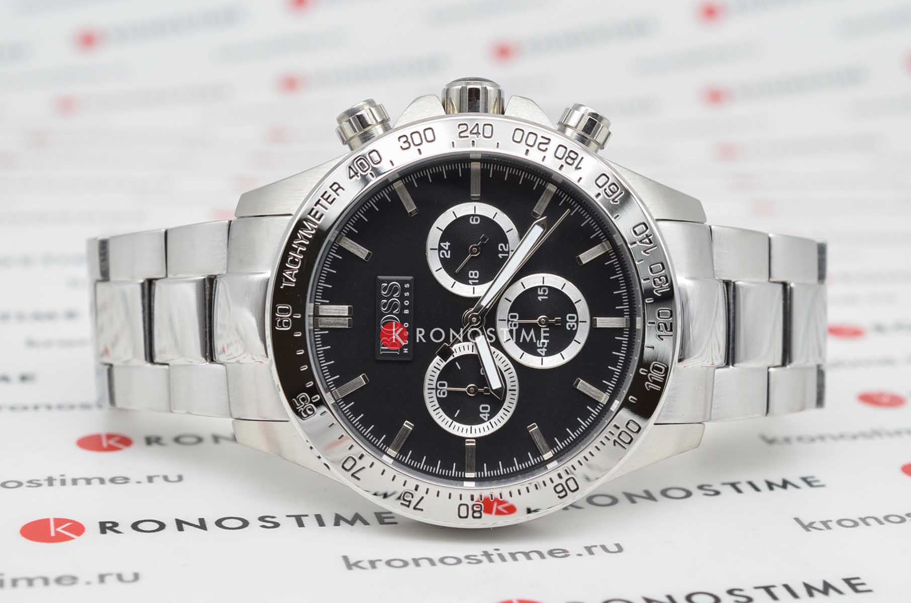 Мужские кварцевые часы Hugo Boss Ikon HB1512965 представляют собой стильный хронографХронографФункция позволяет измерять отрезки времени с особой точностью: часы, минуты, секунды. Верным признаком хронографа является наличие на циферблате 3 дополнительных окошек-счётчиков. с круглым корпусом диаметром 44 мм из нержавеющей стали, дополненным черным циферблатом с серебристыми стрелками и индексами для оптимальной читаемости. Модель оснащена высокоточным кварцевым механизмом с функцией хронографаХронографФункция позволяет измерять отрезки времени с особой точностью: часы, минуты, секунды. Верным признаком хронографа является наличие на циферблате 3 дополнительных окошек-счётчиков., включая 60-минутный счетчик и 24-часовой индикатор, а также тахиметрической шкалой на безелеБезельВнешний ободок, закрепляющий стекло. В спортивных часах так называется поворотное кольцо с делениями на циферблате, выполняет роль таймера – замеряет отрезки времени на шкале. Неподвижный безель – элемент декора. Однонаправленно вращающийся безель на дайверских часах позволяет фиксировать моменты погружения и выныривания на поверхность. для расчетов скорости. Циферблат защищен устойчивым к царапинам минеральным стекломМинеральное стеклоМинеральное стекло представляет собой искусственно выращенный минерал кварца. Такое стекло отличается особой устойчивостью к повреждениям и царапинам. Уступает по некоторым качествам сапфировому стеклу., а водонепроницаемость 5 ATM (50 метров) обеспечивает защиту от брызг и дождя, делая часы практичными для повседневного использования. Стальной браслет с раскладной застежкойРаскладная застёжкаТакой тип застёжки используется только на браслетах из металла. Она никогда не раскрывается полностью, происходит разделение на 2 и более частей. Раскладывающая застёжка снизит вероятность потери часов к минимуму. обеспечивает надежную и комфортную посадку на запястье, подчеркивая спортивно-элегантный стиль модели.