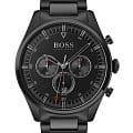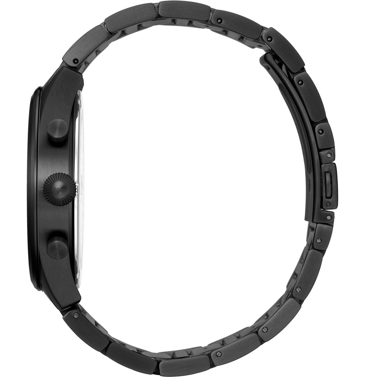 Мужские кварцевые часы Hugo Boss Commissioner HB1513714 представляют собой стильный хронографХронографФункция позволяет измерять отрезки времени с особой точностью: часы, минуты, секунды. Верным признаком хронографа является наличие на циферблате 3 дополнительных окошек-счётчиков. с круглым корпусом диаметром 44 мм из нержавеющей стали с IP-покрытиемIP-покрытиеМетод ионного напыления. Демонстрирует повышенную устойчивость к истиранию, окислению и химическим веществам. Под воздействием высокого давления и температуры около 1500°C молекулы металла надёжно соединяются с частицами корпуса часов. черного цвета. Модель оснащена высокоточным кварцевым механизмом с функцией хронографаХронографФункция позволяет измерять отрезки времени с особой точностью: часы, минуты, секунды. Верным признаком хронографа является наличие на циферблате 3 дополнительных окошек-счётчиков., включая 60-минутный счетчик и 24-часовой индикатор, а также тахиметрической шкалойТахиметрРазмеченная шкала, располагается на ободке или безеле часов. Тахиметр позволяет рассчитать скорость на определённом участке пути, расстояние измеряется в километрах или милях. для расчетов скорости. Черный циферблат с серебристыми стрелками и индексами обеспечивает оптимальную читаемость, защищен устойчивым к царапинам минеральным стекломМинеральное стеклоМинеральное стекло представляет собой искусственно выращенный минерал кварца. Такое стекло отличается особой устойчивостью к повреждениям и царапинам. Уступает по некоторым качествам сапфировому стеклу.. Водонепроницаемость 5 ATM (50 метров) защищает от брызг и дождя. Стальной браслет с IP-покрытиемIP-покрытиеМетод ионного напыления. Демонстрирует повышенную устойчивость к истиранию, окислению и химическим веществам. Под воздействием высокого давления и температуры около 1500°C молекулы металла надёжно соединяются с частицами корпуса часов. и раскладной застежкойРаскладная застёжкаТакой тип застёжки используется только на браслетах из металла. Она никогда не раскрывается полностью, происходит разделение на 2 и более частей. Раскладывающая застёжка снизит вероятность потери часов к минимуму. с фиксатором обеспечивает надежную посадку на запястье.