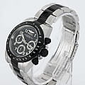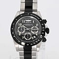 Часы оснащены функцией хронографаХронографФункция позволяет измерять отрезки времени с особой точностью: часы, минуты, секунды. Верным признаком хронографа является наличие на циферблате 3 дополнительных окошек-счётчиков. и тахиметрТахиметрРазмеченная шкала, располагается на ободке или безеле часов. Тахиметр позволяет рассчитать скорость на определённом участке пути, расстояние измеряется в километрах или милях., что позволяет точно измерять скорость и время различных событий. Циферблат защищен прочным минеральным стекломМинеральное стеклоМинеральное стекло представляет собой искусственно выращенный минерал кварца. Такое стекло отличается особой устойчивостью к повреждениям и царапинам. Уступает по некоторым качествам сапфировому стеклу., обеспечивающим высокую устойчивость к царапинам. Завинчивающаяся рифленая заводная головка с защитой гарантирует надежную герметизацию механизма, а завинчивающаяся задняя крышка добавляет дополнительную защиту от внешних воздействий. БезельБезельВнешний ободок, закрепляющий стекло. В спортивных часах так называется поворотное кольцо с делениями на циферблате, выполняет роль таймера – замеряет отрезки времени на шкале. Неподвижный безель – элемент декора. Однонаправленно вращающийся безель на дайверских часах позволяет фиксировать моменты погружения и выныривания на поверхность. с IP-покрытиемIP-покрытиеМетод ионного напыления. Демонстрирует повышенную устойчивость к истиранию, окислению и химическим веществам. Под воздействием высокого давления и температуры около 1500°C молекулы металла надёжно соединяются с частицами корпуса часов..