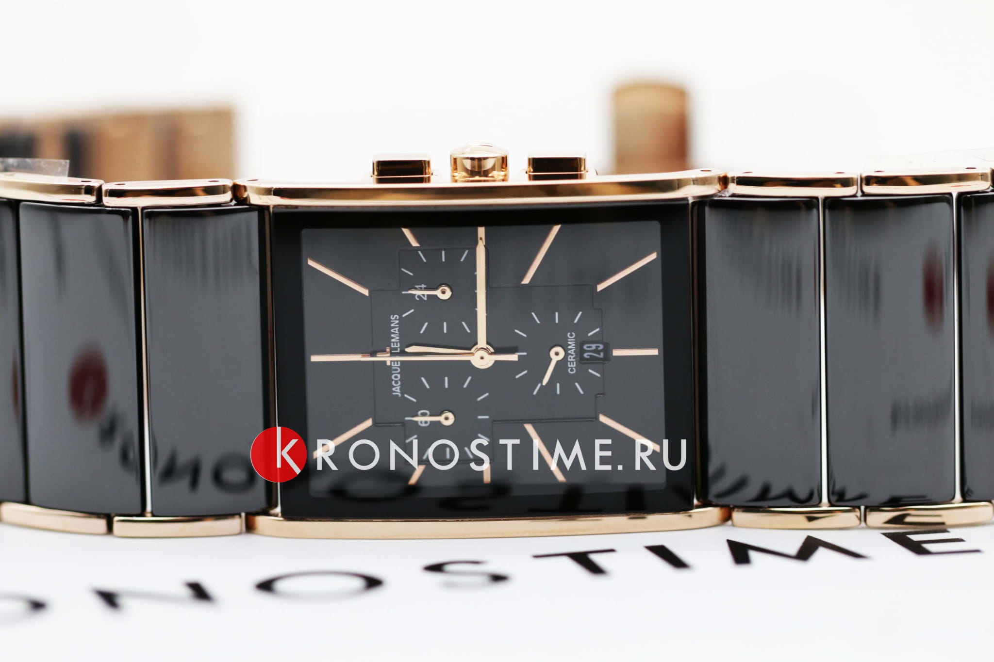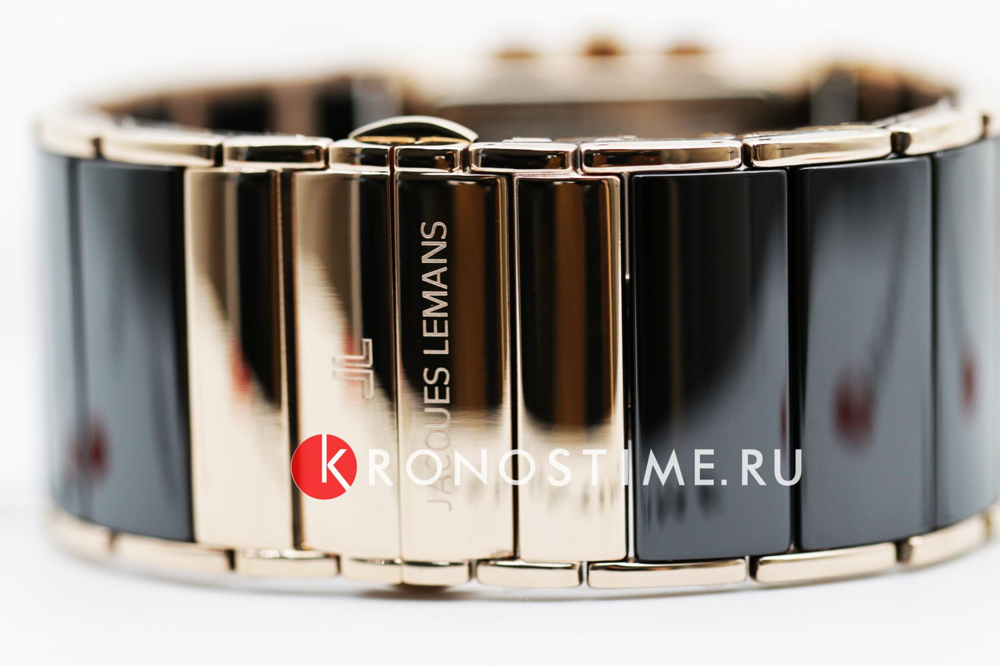 Мужские австрийские часы с хронографХронографФункция позволяет измерять отрезки времени с особой точностью: часы, минуты, секунды. Верным признаком хронографа является наличие на циферблате 3 дополнительных окошек-счётчиков. Jacques Lemans Dublin 1-1941B, кварцевый механизм с высокой точностью. Класс водозащиты: 50 метров, позволит защитить корпус от случайных брызг или капель дождя. Корпус часов изготовлен из стали с PVDPVDУльтратонкое покрытие наносится в технике вакуумного напыления, сочетает в себе нитрид титана особой прочности со слоем золота или оксида хрома. Несёт в себе декоративную или защитную функцию. покрытием цвета розовое золото. Браслет модели из высокотехнологичной керамикиВысокотехнологичная керамикаИнновационный запатентованный Rado материал с гладкой или матовой поверхностью. Керамика за счёт кристаллической структуры обладает повышенной устойчивостью от возникновения царапин. Материал способен принимать температуру тела человека, обеспечивая невероятный комфорт при ношении. черного цвета дополнен надежной .