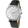 Мужские наручные часы с хронографом; Корпус - Нержавеющая сталь, Стекло - Пластик, Водозащита -50 м. (WR 50), Материал ремешка - Кожаный