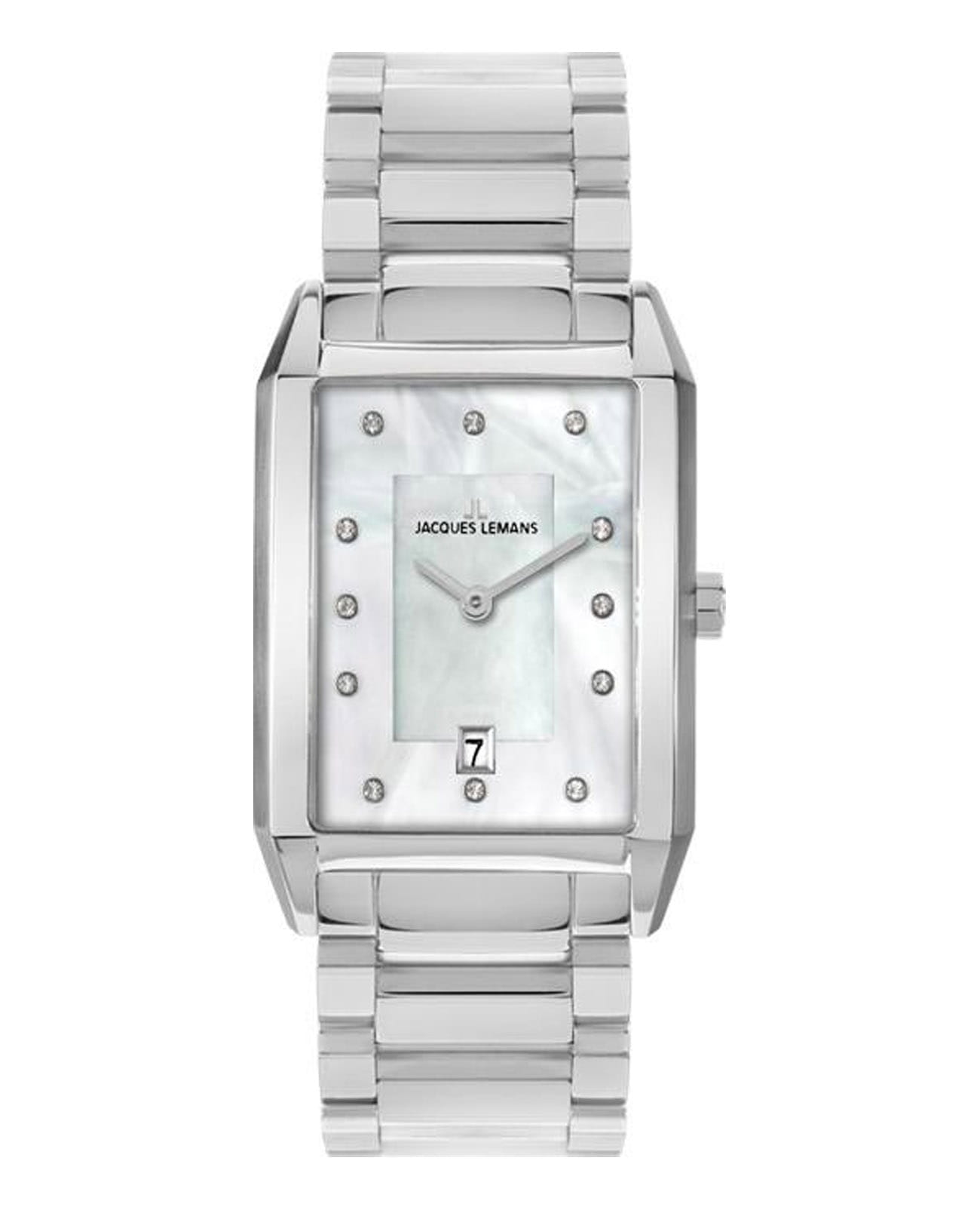 Женские часы Jacques Lemans Classic 1-2158K с минеральным стекломМинеральное стеклоМинеральное стекло представляет собой искусственно выращенный минерал кварца. Такое стекло отличается особой устойчивостью к повреждениям и царапинам. Уступает по некоторым качествам сапфировому стеклу., кварцевый механизм с высокой точностью. Корпус из нержвающей стали. Циферблат украшен кристаллами Swarovski. Окошко даты находится в положении 6 часов. Класс водозащиты: 50 метров, позволит защитить корпус от случайных брызг или капель дождя. Стальной браслет на раскладной застёжкеРаскладная застёжкаТакой тип застёжки используется только на браслетах из металла. Она никогда не раскрывается полностью, происходит разделение на 2 и более частей. Раскладывающая застёжка снизит вероятность потери часов к минимуму..