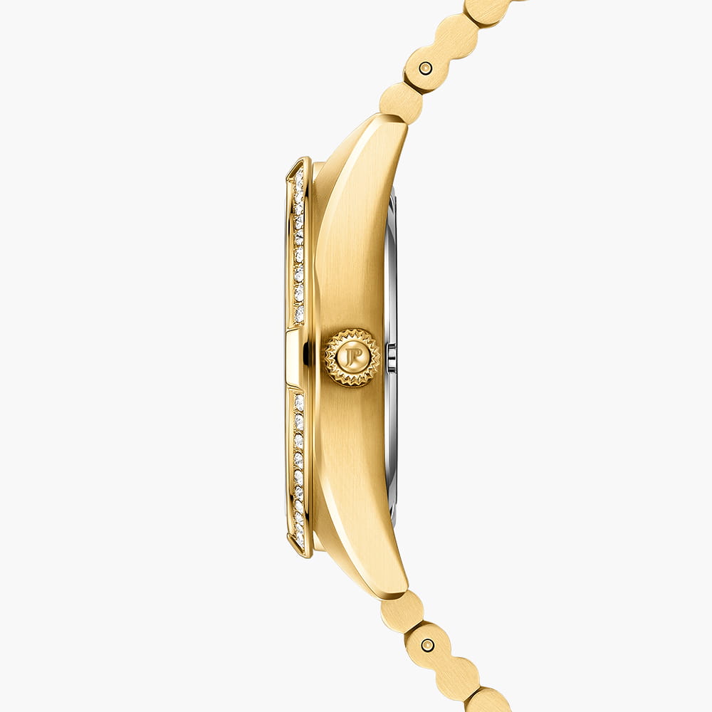 Jacques Philippe Radiante JPQLS682384 — изящная женская модель коллекции Radiante с кварцевым механизмом, сочетающая классический стиль и практичность. Корпус диаметром 33 мм выполнен из нержавеющей стали с PVDPVDУльтратонкое покрытие наносится в технике вакуумного напыления, сочетает в себе нитрид титана особой прочности со слоем золота или оксида хрома. Несёт в себе декоративную или защитную функцию.-покрытием и полированными поверхностями, безельБезельВнешний ободок, закрепляющий стекло. В спортивных часах так называется поворотное кольцо с делениями на циферблате, выполняет роль таймера – замеряет отрезки времени на шкале. Неподвижный безель – элемент декора. Однонаправленно вращающийся безель на дайверских часах позволяет фиксировать моменты погружения и выныривания на поверхность. инкрустирован кристаллами, что придаёт часам утончённый блеск. Водозащита до 5 атм (50 м) позволяет носить модель в повседневных условиях. Выпуклое сапфировое стеклоСапфировое стеклоПрочный и надёжный материал из кристалла сапфира синтетического происхождения, характеризующийся особой твёрдостью и устойчивостью к царапинам и повреждениям. обеспечивает защиту от царапин и сохраняет высокую прозрачность, делая циферблат легко читаемым. Модель оснащена точным швейцарским кварцевым механизмом с индикацией часов, минут и секунд. Циферблат оформлен в лаконичном стиле с аккуратными метками, а браслет из нержавеющей стали с PVDPVDУльтратонкое покрытие наносится в технике вакуумного напыления, сочетает в себе нитрид титана особой прочности со слоем золота или оксида хрома. Несёт в себе декоративную или защитную функцию.-покрытием гармонично завершает образ, подчёркивая универсальность и элегантность этих часов.