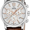 Jaguar J968/1 из коллекции Acamar — элегантные мужские часы, сочетающие швейцарское качество и современный дизайн. Корпус диаметром 42 мм выполнен из нержавеющей стали, что обеспечивает прочность и долговечность. Сапфировое стеклоСапфировое стеклоПрочный и надёжный материал из кристалла сапфира синтетического происхождения, характеризующийся особой твёрдостью и устойчивостью к царапинам и повреждениям. защищает циферблат от царапин и повреждений. Серебристый циферблат с розово-золотыми стрелками и индексами подчёркивает утончённый стиль. Часы оснащены хронографом с центральной секундной стрелкой (1/1 сек.), 30-минутным и 12-часовым счётчиками, а также функцией индикации даты, расположенной в окошке на отметке «4 часа». Ремешок из коричневой кожи обеспечивает комфортное ношение. Классическая застёжка гарантирует надёжную фиксацию. Водозащита до 5 ATM (50 метров) делает часы подходящими для повседневного использования. Jaguar J968/1 — это идеальный выбор для мужчин, которые ценят классический дизайн, функциональность и швейцарское качество.