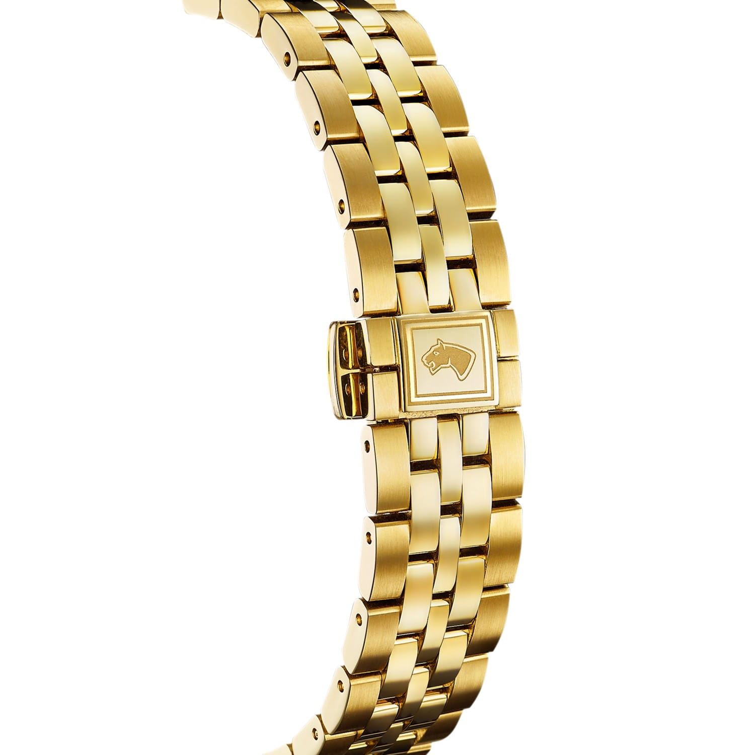 Женские швейцарские часы Jaguar Automatic Woman J999/1, механизм — автоподзавод. В часах с автоподзаводом заводная головка практически не используется, что исключает истирание ее материала и материала корпуса. Сапфировое стеклоСапфировое стеклоПрочный и надёжный материал из кристалла сапфира синтетического происхождения, характеризующийся особой твёрдостью и устойчивостью к царапинам и повреждениям. устойчивое к мелким механическим повреждениям. Корпус часов изготовлен из нержавеющей стали с PVD-покрытиемPVDУльтратонкое покрытие наносится в технике вакуумного напыления, сочетает в себе нитрид титана особой прочности со слоем золота или оксида хрома. Несёт в себе декоративную или защитную функцию.. Класс водозащиты: 50 метров, позволит защитить корпус от случайных брызг или капель дождя. Стальной браслет с PVD-покрытиемPVDУльтратонкое покрытие наносится в технике вакуумного напыления, сочетает в себе нитрид титана особой прочности со слоем золота или оксида хрома. Несёт в себе декоративную или защитную функцию. на застёжке-бабочке с кнопкамиЗастёжка "бабочка"Такой вид застёжки дополняется предохранителями, помогающими избежать случайного раскрытия браслета. Обладают изящным исполнением. . БезельБезельВнешний ободок, закрепляющий стекло. В спортивных часах так называется поворотное кольцо с делениями на циферблате, выполняет роль таймера – замеряет отрезки времени на шкале. Неподвижный безель – элемент декора. Однонаправленно вращающийся безель на дайверских часах позволяет фиксировать моменты погружения и выныривания на поверхность. с PVD-покрытиемPVDУльтратонкое покрытие наносится в технике вакуумного напыления, сочетает в себе нитрид титана особой прочности со слоем золота или оксида хрома. Несёт в себе декоративную или защитную функцию. инкрустирован цирконием.