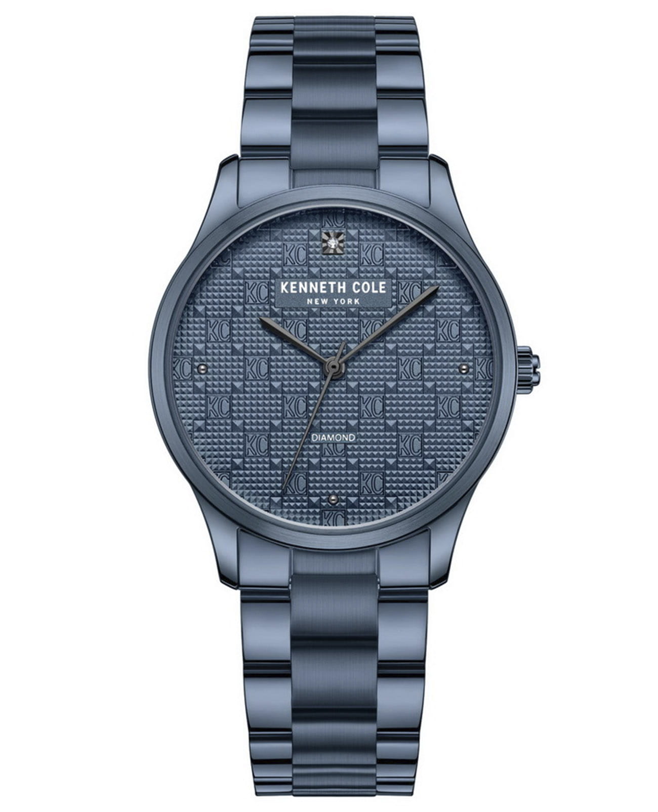 Женские кварцевые часы с минеральным стекломМинеральное стеклоМинеральное стекло представляет собой искусственно выращенный минерал кварца. Такое стекло отличается особой устойчивостью к повреждениям и царапинам. Уступает по некоторым качествам сапфировому стеклу. Kenneth Cole Classic KCWLG2222703, кварцевый механизм с высокой точностью. Класс водозащиты: 30 метров, позволит защитить корпус от случайных брызг или капель дождя. Корпус и браслет изготовлен из стали с IP-покрытиемIP-покрытиеМетод ионного напыления. Демонстрирует повышенную устойчивость к истиранию, окислению и химическим веществам. Под воздействием высокого давления и температуры около 1500°C молекулы металла надёжно соединяются с частицами корпуса часов.. Синий циферблат украшен бриллиантом. Стальной браслет на раскладной застёжкеРаскладная застёжкаТакой тип застёжки используется только на браслетах из металла. Она никогда не раскрывается полностью, происходит разделение на 2 и более частей. Раскладывающая застёжка снизит вероятность потери часов к минимуму..