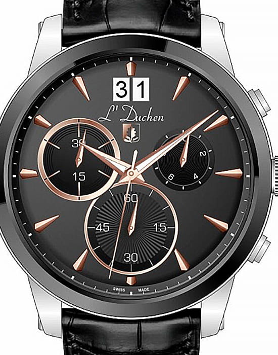 Мужские швейцарские часы-хронографХронографФункция позволяет измерять отрезки времени с особой точностью: часы, минуты, секунды. Верным признаком хронографа является наличие на циферблате 3 дополнительных окошек-счётчиков. L'Duchen Aerostat Chrono D 232.11.35 кварцевый механизм с высокой точностью. Сапфировое стеклоСапфировое стеклоПрочный и надёжный материал из кристалла сапфира синтетического происхождения, характеризующийся особой твёрдостью и устойчивостью к царапинам и повреждениям. устойчивое к появлению царапин, обладающее высокой прозрачностью. Корпус часов выполнен из нержавеющей стали. БезельБезельВнешний ободок, закрепляющий стекло. В спортивных часах так называется поворотное кольцо с делениями на циферблате, выполняет роль таймера – замеряет отрезки времени на шкале. Неподвижный безель – элемент декора. Однонаправленно вращающийся безель на дайверских часах позволяет фиксировать моменты погружения и выныривания на поверхность. из керамики. Стрелки с люминесцентным покрытиемЛюминесцентное покрытиеПозволяет считывать показания времени в темноте. Производители наносят на стрелки, часовые индексы, безель или поверхность циферблата светонакопительный состав, дающий холодное свечение.. Класс водозащиты: 100 метров, позволит плавать, нырять и заниматься другими водными видами спорта. Кожаный ремешок на застёжке «бабочка» с кнопкамиЗастёжка "бабочка"Такой вид застёжки дополняется предохранителями, помогающими избежать случайного раскрытия браслета. Обладают изящным исполнением. .