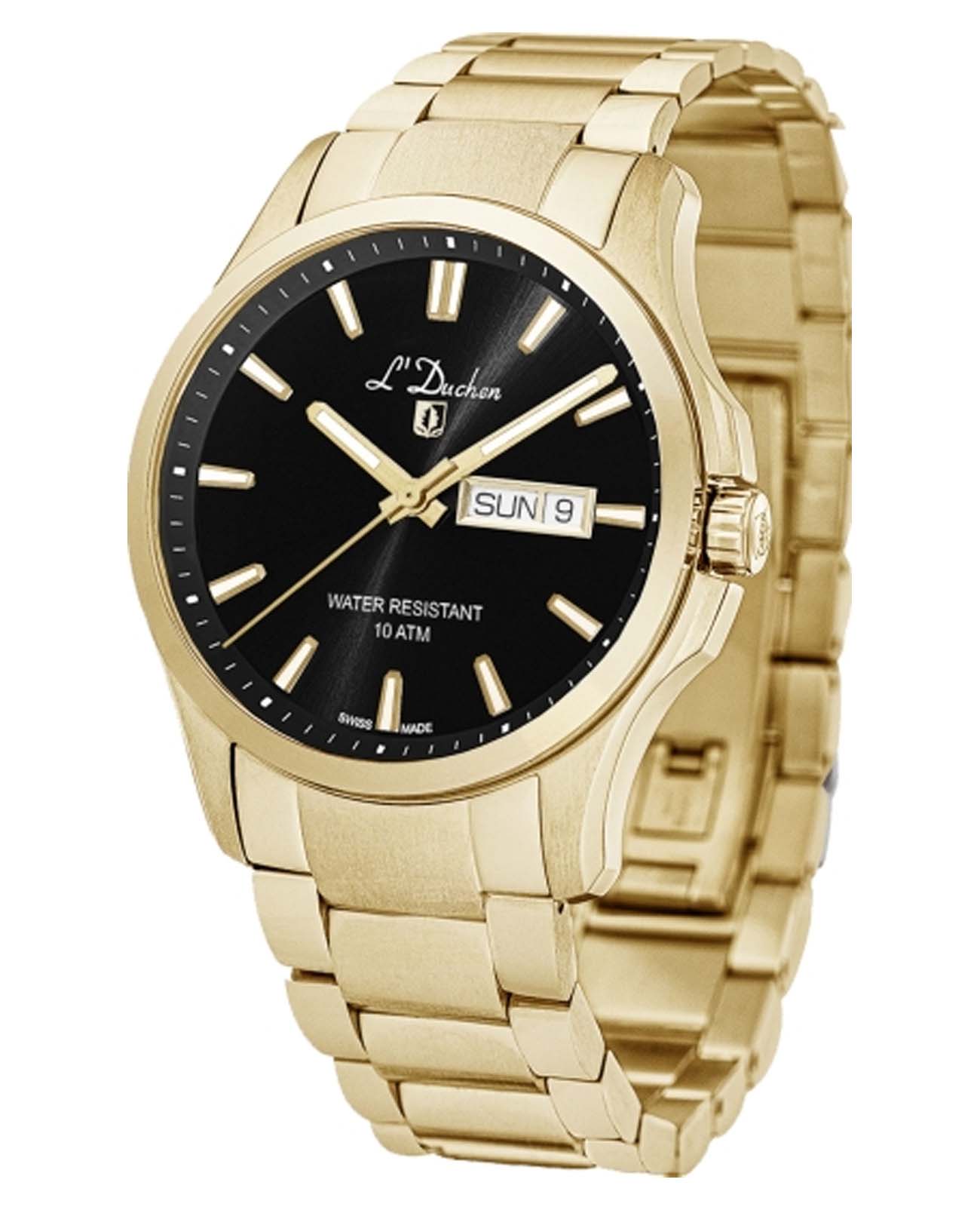 Мужские швейцарские часы L'Duchen Dynamique D 261.20.31, кварцевый механизм с высокой точностью. Сапфировое стеклоСапфировое стеклоПрочный и надёжный материал из кристалла сапфира синтетического происхождения, характеризующийся особой твёрдостью и устойчивостью к царапинам и повреждениям. устойчивое к появлению царапин, обладающее высокой прозрачностью. Корпус часов выполнен из нержавеющей стали с PVD-покрытиемPVDУльтратонкое покрытие наносится в технике вакуумного напыления, сочетает в себе нитрид титана особой прочности со слоем золота или оксида хрома. Несёт в себе декоративную или защитную функцию.. Стрелки с люминесцентным покрытиемЛюминесцентное покрытиеПозволяет считывать показания времени в темноте. Производители наносят на стрелки, часовые индексы, безель или поверхность циферблата светонакопительный состав, дающий холодное свечение.. Класс водозащиты: 100 метров, позволит плавать, нырять и заниматься другими водными видами спорта. Стальной браслет с PVD-покрытиемPVDУльтратонкое покрытие наносится в технике вакуумного напыления, сочетает в себе нитрид титана особой прочности со слоем золота или оксида хрома. Несёт в себе декоративную или защитную функцию. на застёжке «бабочка» с кнопкамиЗастёжка "бабочка"Такой вид застёжки дополняется предохранителями, помогающими избежать случайного раскрытия браслета. Обладают изящным исполнением. .