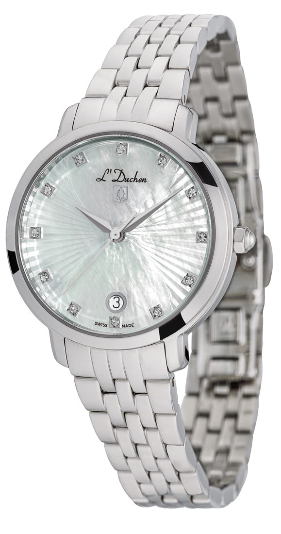 Женские швейцарские часы L'Duchen Eternity D 801.10.33, кварцевый механизм с высокой точностью. Сапфировое стеклоСапфировое стеклоПрочный и надёжный материал из кристалла сапфира синтетического происхождения, характеризующийся особой твёрдостью и устойчивостью к царапинам и повреждениям. устойчивое к появлению царапин, обладающее высокой прозрачностью. Корпус часов выполнен из нержавеющей стали. Окошко даты находится в положении 6 часов. Класс водозащиты: 50 метров, позволит защитить корпус от случайных брызг или капель дождя. Стальной браслет на застёжке «бабочка» с кнопкамиЗастёжка "бабочка"Такой вид застёжки дополняется предохранителями, помогающими избежать случайного раскрытия браслета. Обладают изящным исполнением. .