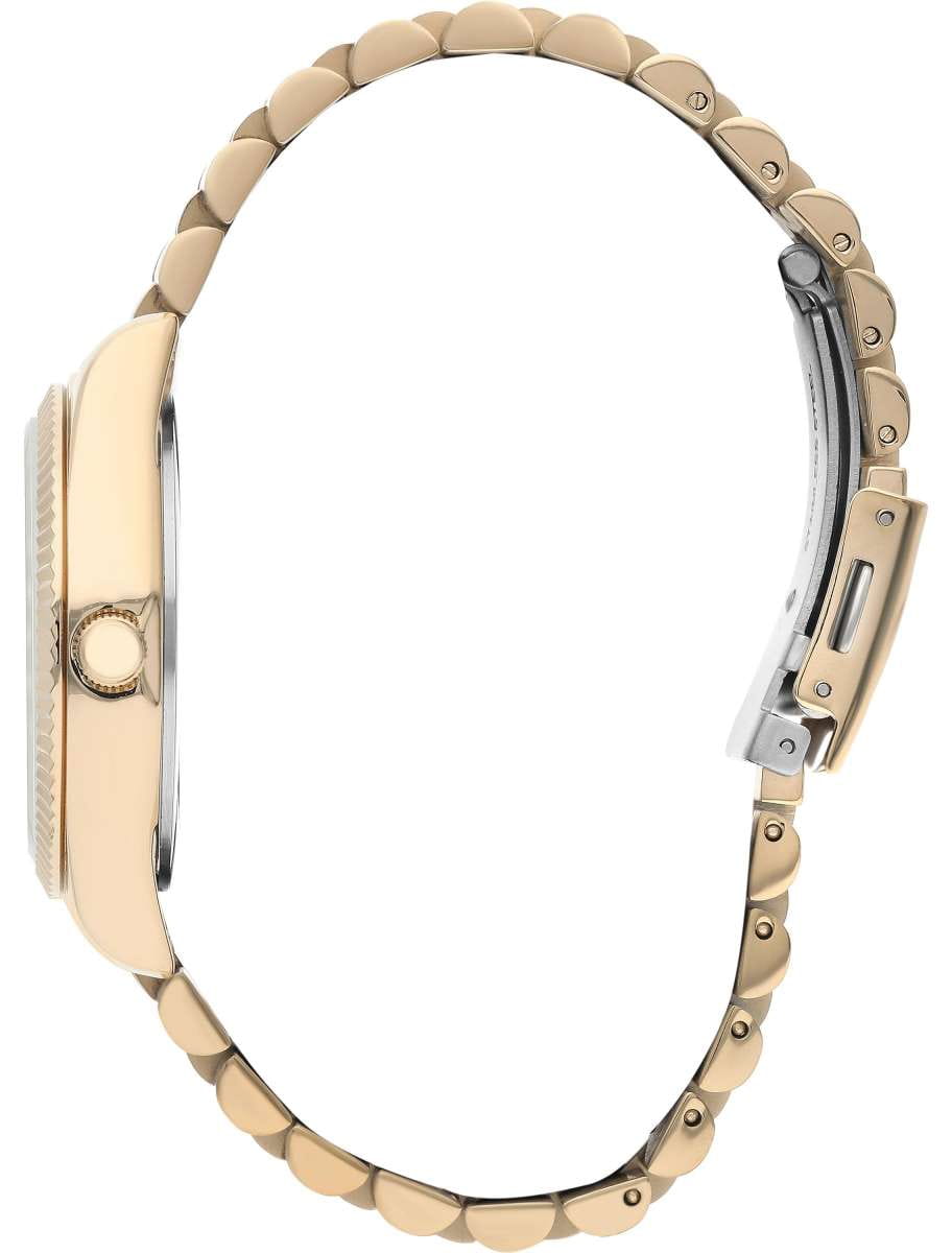 Женские наручные часы Lee Cooper LC07310.120 — это элегантная модель с утончённым дизайном. Корпус диаметром 35 мм выполнен из суперметалла с IP-покрытиемIP-покрытиеМетод ионного напыления. Демонстрирует повышенную устойчивость к истиранию, окислению и химическим веществам. Под воздействием высокого давления и температуры около 1500°C молекулы металла надёжно соединяются с частицами корпуса часов., что придаёт часам изысканный вид. Перламутровый циферблат украшен изящными вставками из циркония и стрелками, обеспечивая удобное считывание времени. Циферблат защищён минеральным стекломМинеральное стеклоМинеральное стекло представляет собой искусственно выращенный минерал кварца. Такое стекло отличается особой устойчивостью к повреждениям и царапинам. Уступает по некоторым качествам сапфировому стеклу., устойчивым к царапинам. Часы работают на кварцевом механизме, обеспечивая точность хода. Браслет из нержавеющей стали с раскладной застёжкойРаскладная застёжкаТакой тип застёжки используется только на браслетах из металла. Она никогда не раскрывается полностью, происходит разделение на 2 и более частей. Раскладывающая застёжка снизит вероятность потери часов к минимуму. гарантирует комфортное ношение и надёжную фиксацию на запястье. Водозащита 30 метров защищает часы от случайных брызг и дождя, делая их подходящими для повседневного использования.
