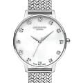 Женские наручные часы Lee Cooper LC07401.320 — это элегантная модель с утончённым дизайном. Корпус диаметром 36 мм выполнен из суперметалла, что придаёт часам изысканный вид. Перламутровый циферблат украшен изящными вставками из циркония и стрелками, обеспечивая удобное считывание времени. Циферблат защищён минеральным стекломМинеральное стеклоМинеральное стекло представляет собой искусственно выращенный минерал кварца. Такое стекло отличается особой устойчивостью к повреждениям и царапинам. Уступает по некоторым качествам сапфировому стеклу., устойчивым к царапинам. Часы работают на кварцевом механизме, обеспечивая точность хода. Браслет из нержавеющей стали с раскладным замкомРаскладной замокДанный вариант застежки используется только на часах с металлическим браслетом. Отличительная особенность такого крепления в том, что длина браслета становится универсальной и вы можете самостоятельно отрегулировать нужный вам размер – застежка просто двигается по браслету часов. гарантирует комфортное ношение и надёжную фиксацию на запястье. Водозащита 30 метров защищает часы от случайных брызг и дождя, делая их подходящими для повседневного использования.