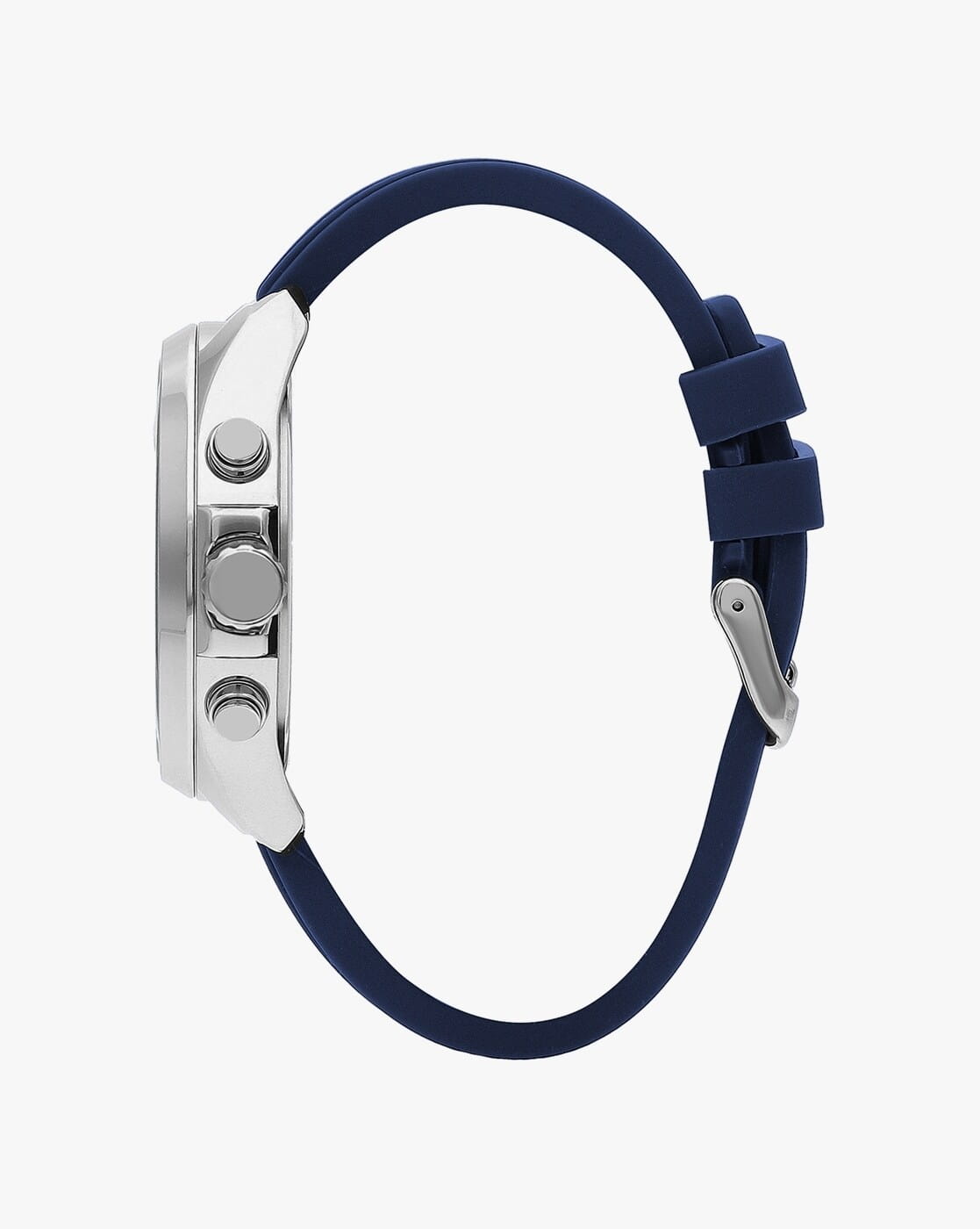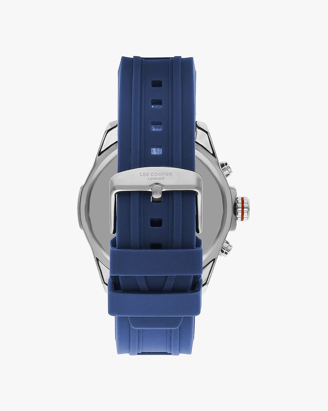 Lee Cooper LC07432.399  — элегантная модель с функциональными возможностями для повседневного использования. Круглый корпус из нержавеющей стали диаметром 48 мм придаёт часам классический и современный вид. Циферблат защищён минеральным стекломМинеральное стеклоМинеральное стекло представляет собой искусственно выращенный минерал кварца. Такое стекло отличается особой устойчивостью к повреждениям и царапинам. Уступает по некоторым качествам сапфировому стеклу., устойчивым к царапинам, хорошо может выдержать небольшие удары и падения. Часы работают на кварцевом механизме, обеспечивающем точность хода. Каучуковый ремешок синего цвета на стандартной застёжке гарантирует удобную посадку и надёжную фиксацию на запястье. Водозащита 50 метров защищает часы от брызг и дождя, делая их подходящими для повседневного использования. Стрелки и метки покрыты люминесцентным покрытиемЛюминесцентное покрытиеПозволяет считывать показания времени в темноте. Производители наносят на стрелки, часовые индексы, безель или поверхность циферблата светонакопительный состав, дающий холодное свечение., обеспечивающим отличную читаемость в темноте.