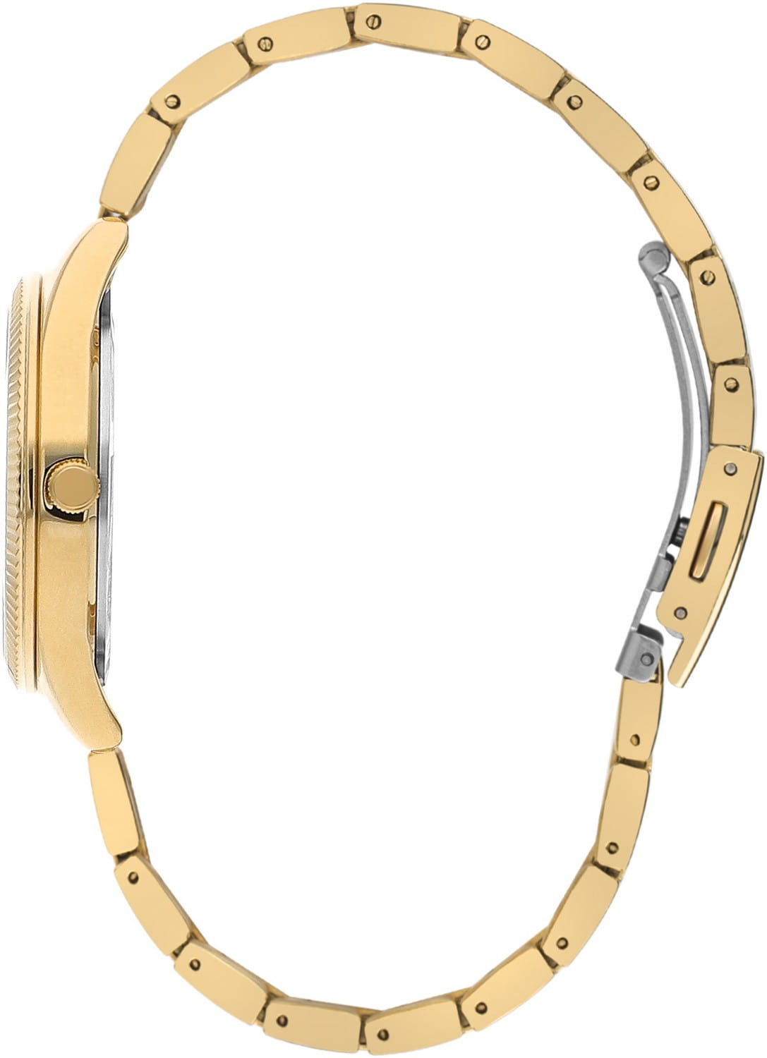 Женские часы Lee Cooper LC07543.130 — это стильное сочетание элегантности и современного дизайна. Круглый корпус диаметром 34 мм выполнен из суперметалла с IP-покрытиемIP-покрытиеМетод ионного напыления. Демонстрирует повышенную устойчивость к истиранию, окислению и химическим веществам. Под воздействием высокого давления и температуры около 1500°C молекулы металла надёжно соединяются с частицами корпуса часов. золотого цвета, что придает модели особый блеск. Серебристый циферблат защищен минеральным стекломМинеральное стеклоМинеральное стекло представляет собой искусственно выращенный минерал кварца. Такое стекло отличается особой устойчивостью к повреждениям и царапинам. Уступает по некоторым качествам сапфировому стеклу., обеспечивающим устойчивость к царапинам. Неподвижный рифленый безельБезельВнешний ободок, закрепляющий стекло. В спортивных часах так называется поворотное кольцо с делениями на циферблате, выполняет роль таймера – замеряет отрезки времени на шкале. Неподвижный безель – элемент декора. Однонаправленно вращающийся безель на дайверских часах позволяет фиксировать моменты погружения и выныривания на поверхность.. Метки в виде штрихов. Часы оснащены надежным кварцевым механизмом, а металлический браслет с IP-покрытиемIP-покрытиеМетод ионного напыления. Демонстрирует повышенную устойчивость к истиранию, окислению и химическим веществам. Под воздействием высокого давления и температуры около 1500°C молекулы металла надёжно соединяются с частицами корпуса часов. на раскладной застёжкеРаскладная застёжкаТакой тип застёжки используется только на браслетах из металла. Она никогда не раскрывается полностью, происходит разделение на 2 и более частей. Раскладывающая застёжка снизит вероятность потери часов к минимуму. гарантирует комфортную посадку на запястье. Водозащита 30 метров защищает модель от случайных брызг и дождя. Lee Cooper — отличный выбор для тех, кто ценит утонченность и качество.
