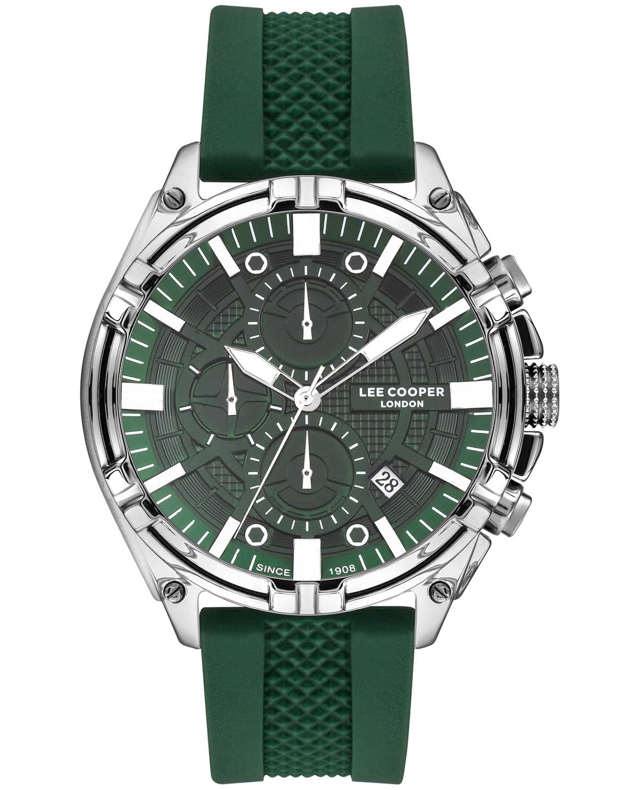 Мужские часы Lee Cooper LC07545.677 — это стильное сочетание элегантности и современного дизайна. Круглый корпус диаметром 45 мм выполнен из суперметалла серебристого цвета, что придает модели особый вид. Циферблат защищен минеральным стекломМинеральное стеклоМинеральное стекло представляет собой искусственно выращенный минерал кварца. Такое стекло отличается особой устойчивостью к повреждениям и царапинам. Уступает по некоторым качествам сапфировому стеклу., обеспечивающим устойчивость к царапинам. Метки в виде штрихов. Часы оснащены надежным кварцевым механизмом, а каучуковый ремешок на стандартной застежке гарантирует комфортную посадку на запястье. Окошко даты находится в положении между 4 и 5 часов. Стрелки и метки с люминесцентным покрытиемЛюминесцентное покрытиеПозволяет считывать показания времени в темноте. Производители наносят на стрелки, часовые индексы, безель или поверхность циферблата светонакопительный состав, дающий холодное свечение. позволяют легко считывать время даже в условиях недостаточного освещения. Водозащита 50 метров позволит защитить корпус от случайных брызг или капель дождя. Lee Cooper  — отличный выбор для тех, кто ценит утонченность и качество.