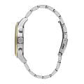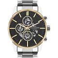 Мужские часы Lee Cooper LC07562.250 — это стильное сочетание элегантности и современного дизайна. Круглый корпус диаметром 46 мм выполнен из суперметалла серебристого цвета, что придает модели особый вид. Неподвижный безельБезельВнешний ободок, закрепляющий стекло. В спортивных часах так называется поворотное кольцо с делениями на циферблате, выполняет роль таймера – замеряет отрезки времени на шкале. Неподвижный безель – элемент декора. Однонаправленно вращающийся безель на дайверских часах позволяет фиксировать моменты погружения и выныривания на поверхность. с IP-покрытиемIP-покрытиеМетод ионного напыления. Демонстрирует повышенную устойчивость к истиранию, окислению и химическим веществам. Под воздействием высокого давления и температуры около 1500°C молекулы металла надёжно соединяются с частицами корпуса часов. золотого цвета. Циферблат защищен минеральным стекломМинеральное стеклоМинеральное стекло представляет собой искусственно выращенный минерал кварца. Такое стекло отличается особой устойчивостью к повреждениям и царапинам. Уступает по некоторым качествам сапфировому стеклу., обеспечивающим устойчивость к царапинам. Метки в виде штрихов. Часы оснащены надежным кварцевым механизмом, а стальной браслет на раскладной застёжкеРаскладная застёжкаТакой тип застёжки используется только на браслетах из металла. Она никогда не раскрывается полностью, происходит разделение на 2 и более частей. Раскладывающая застёжка снизит вероятность потери часов к минимуму. гарантирует комфортную посадку на запястье. Мультифункциональная модель с индикацией даты, дня недели, с дополнительным 24-х часовым индикатором. Стрелки с люминесцентным покрытиемЛюминесцентное покрытиеПозволяет считывать показания времени в темноте. Производители наносят на стрелки, часовые индексы, безель или поверхность циферблата светонакопительный состав, дающий холодное свечение. позволяют легко считывать время даже в условиях недостаточного освещения. Водозащита 50 метров позволит защитить корпус от случайных брызг или капель дождя. Lee Cooper  — отличный выбор для тех, кто ценит утонченность и качество.