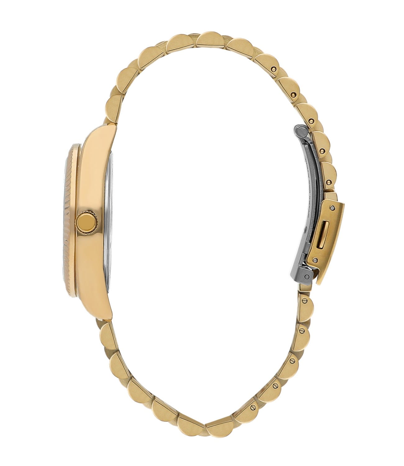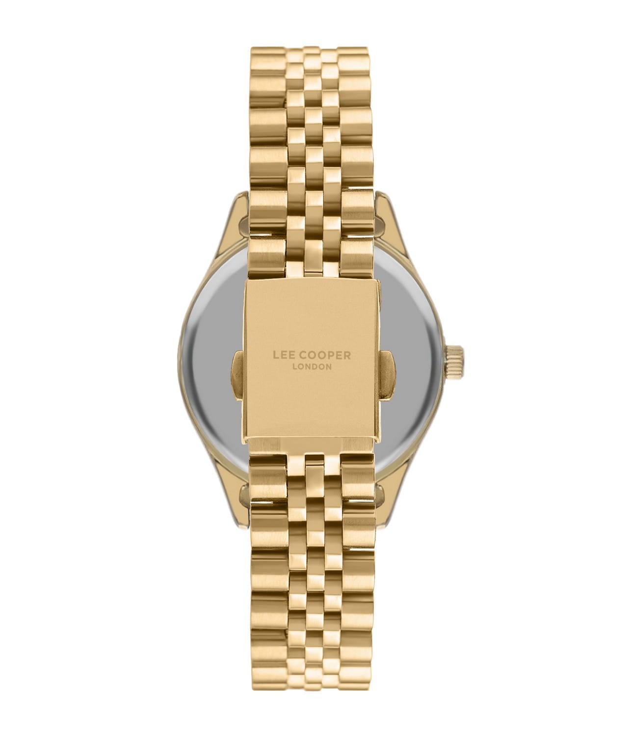 Женские часы Lee Cooper LC07824.120 выполнены в классическом стиле и сочетают строгий дизайн с надёжным механизмом. Модель оснащена кварцевым механизмом, обеспечивающим точность хода и минимальное обслуживание. Изящный корпус имеет размер 36 мм, изготовлен из суперметалла с IP-покрытиемIP-покрытиеМетод ионного напыления. Демонстрирует повышенную устойчивость к истиранию, окислению и химическим веществам. Под воздействием высокого давления и температуры около 1500°C молекулы металла надёжно соединяются с частицами корпуса часов., гарантирует комфорт при ношении. Перламутровый циферблат дополнен штрихами и римскими цифрами для чёткого отсчёта времени. Защиту циферблата обеспечивает минеральное стеклоМинеральное стеклоМинеральное стекло представляет собой искусственно выращенный минерал кварца. Такое стекло отличается особой устойчивостью к повреждениям и царапинам. Уступает по некоторым качествам сапфировому стеклу., устойчивое к мелким механическим повреждениям. Стальной браслет с IP-покрытиемIP-покрытиеМетод ионного напыления. Демонстрирует повышенную устойчивость к истиранию, окислению и химическим веществам. Под воздействием высокого давления и температуры около 1500°C молекулы металла надёжно соединяются с частицами корпуса часов. на раскладной застёжкеРаскладная застёжкаТакой тип застёжки используется только на браслетах из металла. Она никогда не раскрывается полностью, происходит разделение на 2 и более частей. Раскладывающая застёжка снизит вероятность потери часов к минимуму. гарантирует удобную посадку и надёжную фиксацию на запястье. Стрелки и метки с люминесцентным покрытиемЛюминесцентное покрытиеПозволяет считывать показания времени в темноте. Производители наносят на стрелки, часовые индексы, безель или поверхность циферблата светонакопительный состав, дающий холодное свечение., обеспечивающим хорошую читаемость в темноте.Водозащита 30WR позволяет использовать часы в повседневных условиях без риска повреждения от случайных брызг воды. Это сочетание классического дизайна, прочности материалов и качества исполнения для уверенных в себе женщин.