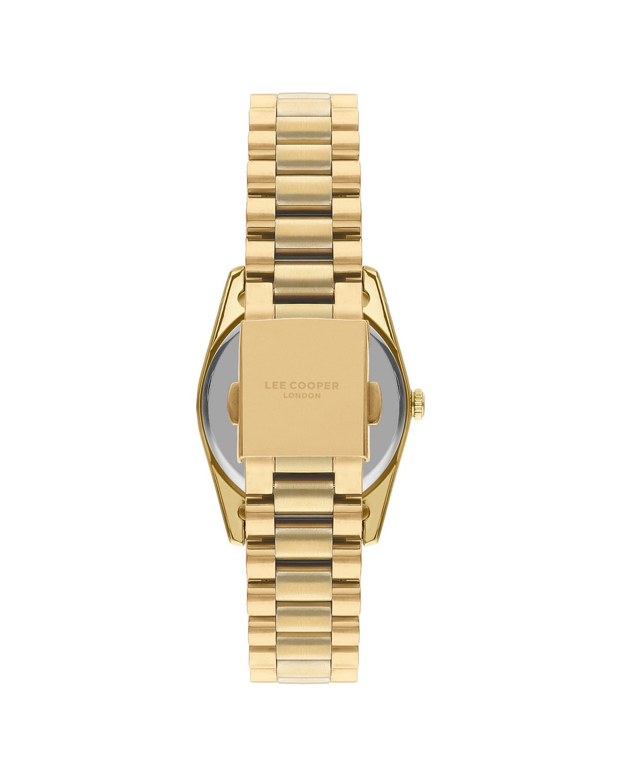 Женские часы Lee Cooper LC07825.120 выполнены в классическом стиле и сочетают строгий дизайн с надёжным механизмом. Модель оснащена кварцевым механизмом, обеспечивающим точность хода и минимальное обслуживание. Корпус имеет размер 36 мм, изготовлен из суперметалла с IP-покрытиемIP-покрытиеМетод ионного напыления. Демонстрирует повышенную устойчивость к истиранию, окислению и химическим веществам. Под воздействием высокого давления и температуры около 1500°C молекулы металла надёжно соединяются с частицами корпуса часов., гарантирует комфорт при ношении. Изящный циферблат дополнен штрихами и римскими цифрами для чёткого отсчёта времени. Защиту циферблата обеспечивает минеральное стеклоМинеральное стеклоМинеральное стекло представляет собой искусственно выращенный минерал кварца. Такое стекло отличается особой устойчивостью к повреждениям и царапинам. Уступает по некоторым качествам сапфировому стеклу., устойчивое к мелким механическим повреждениям. Стальной браслет с IP-покрытиемIP-покрытиеМетод ионного напыления. Демонстрирует повышенную устойчивость к истиранию, окислению и химическим веществам. Под воздействием высокого давления и температуры около 1500°C молекулы металла надёжно соединяются с частицами корпуса часов. на раскладной застёжкеРаскладная застёжкаТакой тип застёжки используется только на браслетах из металла. Она никогда не раскрывается полностью, происходит разделение на 2 и более частей. Раскладывающая застёжка снизит вероятность потери часов к минимуму. гарантирует удобную посадку и надёжную фиксацию на запястье. Стрелки с люминесцентным покрытиемЛюминесцентное покрытиеПозволяет считывать показания времени в темноте. Производители наносят на стрелки, часовые индексы, безель или поверхность циферблата светонакопительный состав, дающий холодное свечение., обеспечивающим хорошую читаемость в темноте.Водозащита 30WR позволяет использовать часы в повседневных условиях без риска повреждения от случайных брызг воды. Это сочетание классического дизайна, прочности материалов и качества исполнения для уверенных в себе женщин.