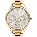 Женские часы Lee Cooper LC07865.130 — это стильное сочетание элегантности и современного дизайна. Круглый корпус диаметром 38 мм выполнен из суперметалла с IP-покрытиемIP-покрытиеМетод ионного напыления. Демонстрирует повышенную устойчивость к истиранию, окислению и химическим веществам. Под воздействием высокого давления и температуры около 1500°C молекулы металла надёжно соединяются с частицами корпуса часов. золотого цвета, придающий модели особый блеск. Серебристый циферблат защищен минеральным стекломМинеральное стеклоМинеральное стекло представляет собой искусственно выращенный минерал кварца. Такое стекло отличается особой устойчивостью к повреждениям и царапинам. Уступает по некоторым качествам сапфировому стеклу., обеспечивающим устойчивость к царапинам. Часы оснащены надежным кварцевым механизмом, а стальной браслет с IP-покрытиемIP-покрытиеМетод ионного напыления. Демонстрирует повышенную устойчивость к истиранию, окислению и химическим веществам. Под воздействием высокого давления и температуры около 1500°C молекулы металла надёжно соединяются с частицами корпуса часов. на раскладной застёжкеРаскладная застёжкаТакой тип застёжки используется только на браслетах из металла. Она никогда не раскрывается полностью, происходит разделение на 2 и более частей. Раскладывающая застёжка снизит вероятность потери часов к минимуму. гарантирует комфортную посадку на запястье. Мультифункциональная модель с индикацией даты, дня недели, с дополнительным 24-х часовым индикатором. Водозащита 30 метров защищает модель от случайных брызг и дождя. Lee Cooper — отличный выбор для тех, кто ценит утонченность и качество.