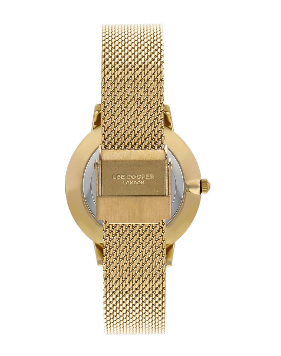Женские часы Lee Cooper LC07875.120 — это стильное сочетание элегантности и современного дизайна. Изящный корпус выполнен из суперметалла с IP-покрытиемIP-покрытиеМетод ионного напыления. Демонстрирует повышенную устойчивость к истиранию, окислению и химическим веществам. Под воздействием высокого давления и температуры около 1500°C молекулы металла надёжно соединяются с частицами корпуса часов. золотого цвета. Изысканный циферблат инкрустирован цирконами, что придает модели особый блеск и защищен минеральным стекломМинеральное стеклоМинеральное стекло представляет собой искусственно выращенный минерал кварца. Такое стекло отличается особой устойчивостью к повреждениям и царапинам. Уступает по некоторым качествам сапфировому стеклу., обеспечивающим устойчивость к царапинам. Центральные часовая, минутная стрелки. Часы оснащены надежным кварцевым механизмом. Стальной браслет с IP-покрытиемIP-покрытиеМетод ионного напыления. Демонстрирует повышенную устойчивость к истиранию, окислению и химическим веществам. Под воздействием высокого давления и температуры около 1500°C молекулы металла надёжно соединяются с частицами корпуса часов. с застежкой, выполненной в виде раскладного замкаРаскладной замокДанный вариант застежки используется только на часах с металлическим браслетом. Отличительная особенность такого крепления в том, что длина браслета становится универсальной и вы можете самостоятельно отрегулировать нужный вам размер – застежка просто двигается по браслету часов., гарантирующего комфортное и безопасное ношение. Водозащита 30 метров защищает модель от случайных брызг и дождя. Lee Cooper  — отличный выбор для тех, кто ценит утонченность и качество.