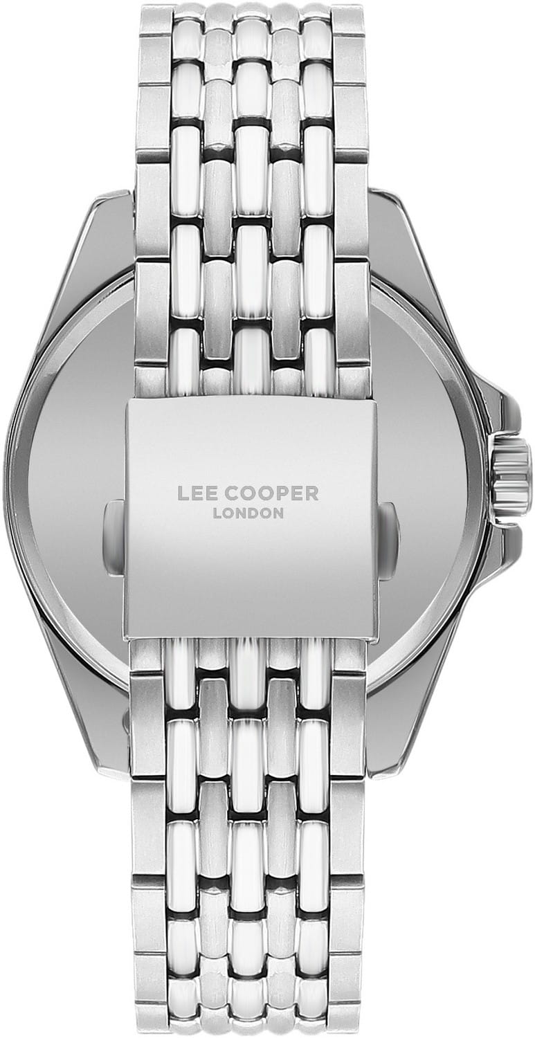 Lee Cooper LC07954.300 модель с корпусом из суперметалла с безелемБезельВнешний ободок, закрепляющий стекло. В спортивных часах так называется поворотное кольцо с делениями на циферблате, выполняет роль таймера – замеряет отрезки времени на шкале. Неподвижный безель – элемент декора. Однонаправленно вращающийся безель на дайверских часах позволяет фиксировать моменты погружения и выныривания на поверхность. с IP-покрытиемIP-покрытиеМетод ионного напыления. Демонстрирует повышенную устойчивость к истиранию, окислению и химическим веществам. Под воздействием высокого давления и температуры около 1500°C молекулы металла надёжно соединяются с частицами корпуса часов. обеспечивает комфорт при носке, а циферблат с метками упрощает счёт времени. Защитное минеральное стеклоМинеральное стеклоМинеральное стекло представляет собой искусственно выращенный минерал кварца. Такое стекло отличается особой устойчивостью к повреждениям и царапинам. Уступает по некоторым качествам сапфировому стеклу. противостоит мелким механическим повреждениям, стрелки и метки покрыты люминесцентным подсветкойЛюминесцентное покрытиеПозволяет считывать показания времени в темноте. Производители наносят на стрелки, часовые индексы, безель или поверхность циферблата светонакопительный состав, дающий холодное свечение. для удобного считывания в темноте. Стальной браслет на раскладной застёжкеРаскладная застёжкаТакой тип застёжки используется только на браслетах из металла. Она никогда не раскрывается полностью, происходит разделение на 2 и более частей. Раскладывающая застёжка снизит вероятность потери часов к минимуму. обеспечивает надёжное закрепление на запястье. WR 50 оберегает от случайных брызг при повседневной эксплуатации.