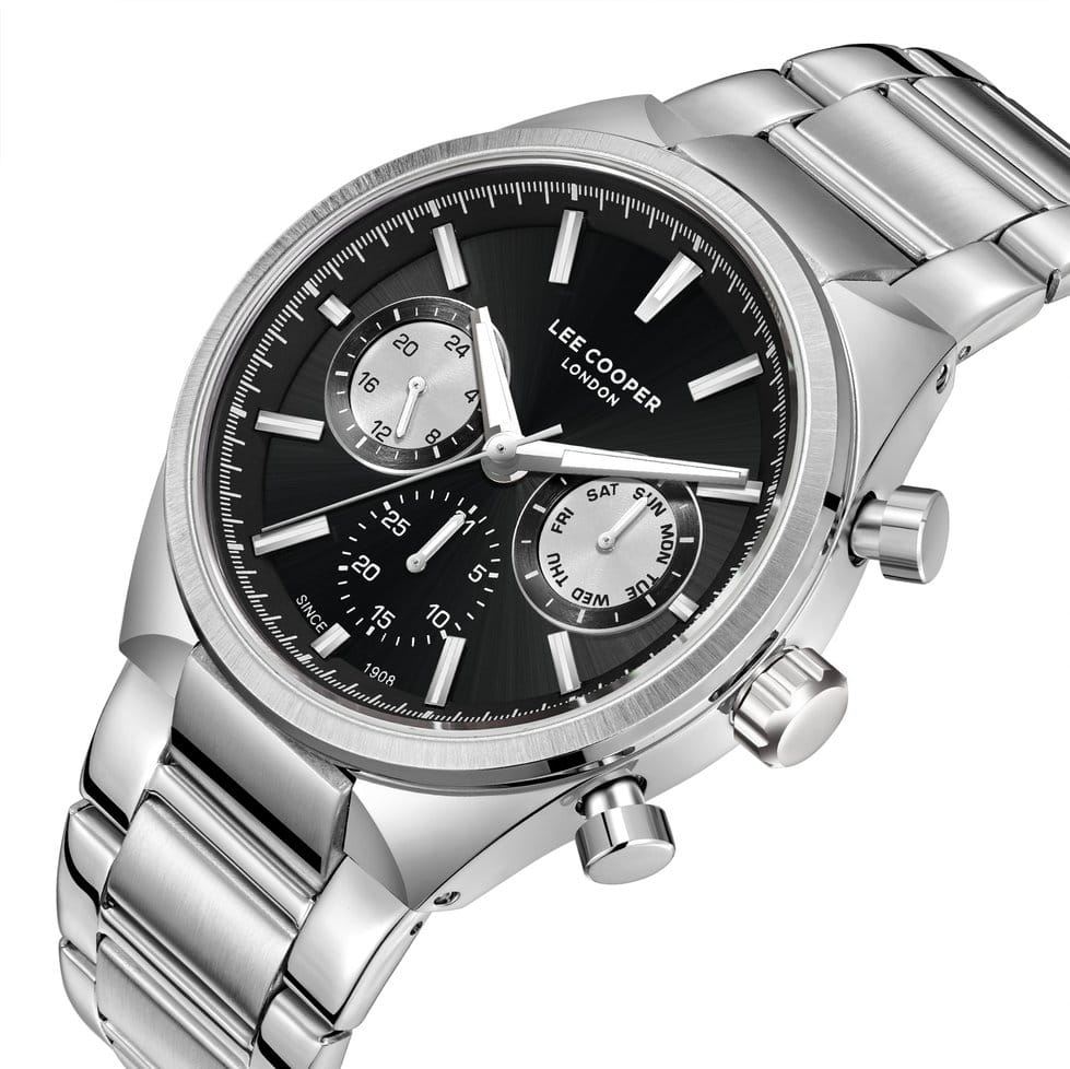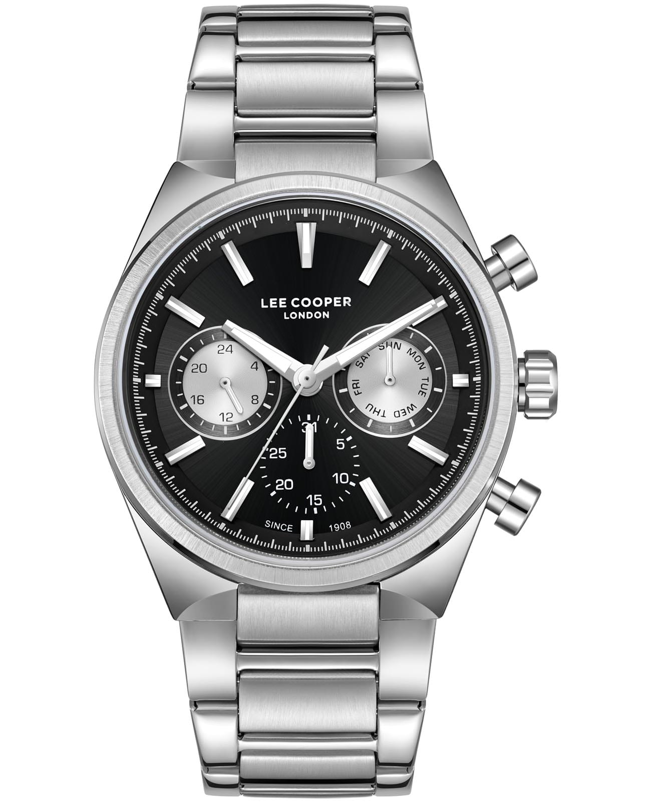 Мужские наручные часы Lee Cooper LC08174.350 оснащены кварцевым механизмом, обеспечивающий высокую точность хода и надежность. Элегантный корпус часов выполнен из суперметалла серебристого цвета, что делает их устойчивыми к внешним воздействиям и придает благородный вид. Циферблат украшен классическими стрелками и метками с люминесцентным покрытиемЛюминесцентное покрытиеПозволяет считывать показания времени в темноте. Производители наносят на стрелки, часовые индексы, безель или поверхность циферблата светонакопительный состав, дающий холодное свечение., гармонично дополняющим общий дизайн модели. Для защиты циферблата используется минеральное стеклоМинеральное стеклоМинеральное стекло представляет собой искусственно выращенный минерал кварца. Такое стекло отличается особой устойчивостью к повреждениям и царапинам. Уступает по некоторым качествам сапфировому стеклу., устойчивое к царапинам и механическим повреждениям. Корпус имеет круглую форму диаметром 42 мм, что делает часы заметными и подходящими. Браслет из стали оснащен раскладной застёжкойРаскладная застёжкаТакой тип застёжки используется только на браслетах из металла. Она никогда не раскрывается полностью, происходит разделение на 2 и более частей. Раскладывающая застёжка снизит вероятность потери часов к минимуму., обеспечивающим комфортное и безопасное ношение. Вынесенный циферблат с 24-х часовым указателем времени, индикацией даты и дня недели. Часы обладают водонепроницаемостью до 50 метров (5 АТМ), что позволяет использовать их в повседневной жизни, включая контакт с водой при мытье рук или дожде. Эти часы станут идеальным выбором для мужчин, ценящих стиль, качество и функциональность.