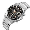 Мужские наручные часы-хронографХронографФункция позволяет измерять отрезки времени с особой точностью: часы, минуты, секунды. Верным признаком хронографа является наличие на циферблате 3 дополнительных окошек-счётчиков. Lee Cooper LC08188.650 оснащены кварцевым механизмом, обеспечивающий высокую точность хода и надежность. Элегантный корпус часов выполнен из суперметалла серебристого цвета, что делает их устойчивыми к внешним воздействиям и придает благородный вид. Циферблат украшен классическими стрелками и метками с люминесцентным покрытиемЛюминесцентное покрытиеПозволяет считывать показания времени в темноте. Производители наносят на стрелки, часовые индексы, безель или поверхность циферблата светонакопительный состав, дающий холодное свечение., гармонично дополняющим общий дизайн модели. Для защиты циферблата используется минеральное стеклоМинеральное стеклоМинеральное стекло представляет собой искусственно выращенный минерал кварца. Такое стекло отличается особой устойчивостью к повреждениям и царапинам. Уступает по некоторым качествам сапфировому стеклу., устойчивое к царапинам и механическим повреждениям. Корпус имеет круглую форму диаметром 41 мм, что делает часы заметными и подходящими. Браслет из стали оснащен раскладной застёжкойРаскладная застёжкаТакой тип застёжки используется только на браслетах из металла. Она никогда не раскрывается полностью, происходит разделение на 2 и более частей. Раскладывающая застёжка снизит вероятность потери часов к минимуму., обеспечивающим комфортное и безопасное ношение. Неподвижный безельБезельВнешний ободок, закрепляющий стекло. В спортивных часах так называется поворотное кольцо с делениями на циферблате, выполняет роль таймера – замеряет отрезки времени на шкале. Неподвижный безель – элемент декора. Однонаправленно вращающийся безель на дайверских часах позволяет фиксировать моменты погружения и выныривания на поверхность. с IP-покрытиемIP-покрытиеМетод ионного напыления. Демонстрирует повышенную устойчивость к истиранию, окислению и химическим веществам. Под воздействием высокого давления и температуры около 1500°C молекулы металла надёжно соединяются с частицами корпуса часов. черного цвета. Вынесенный циферблат с 24-х часовым указателем времени, индикацией даты и дня недели. Окошко даты находится в положении между 4 и 5 часов. Часы обладают водонепроницаемостью до 30 метров (3 АТМ), что позволяет использовать их в повседневной жизни, включая контакт с водой при мытье рук или дожде. Эти часы станут идеальным выбором для мужчин, ценящих стиль, качество и функциональность.