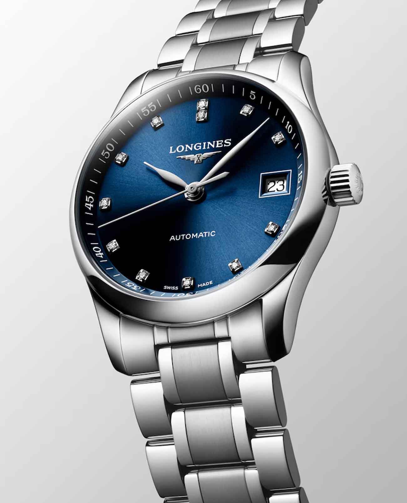 Швейцарские механические часы Longines Master Collection L2.357.4.97.6. Сапфировое стеклоСапфировое стеклоПрочный и надёжный материал из кристалла сапфира синтетического происхождения, характеризующийся особой твёрдостью и устойчивостью к царапинам и повреждениям. устойчивое к появлению царапин, обладающее высокой прозрачностью. Корпус часов изготовлен из нержавеющей стали. Циферблат с 12 бриллиантами группы Top Wesselton VS-SI общим весом 0.055 карата. Окошко даты в положении 3 часа. Автоматический механизм с частотой баланса 25 200 полуколебаний в час и запасом хода, которого хватает примерно на 72 часа работы. Класс водозащиты: 30 метров, позволит защитить корпус от случайных брызг или капель дождя. Стальной браслет на застёжке «бабочка» с кнопкамиЗастёжка "бабочка"Такой вид застёжки дополняется предохранителями, помогающими избежать случайного раскрытия браслета. Обладают изящным исполнением. .