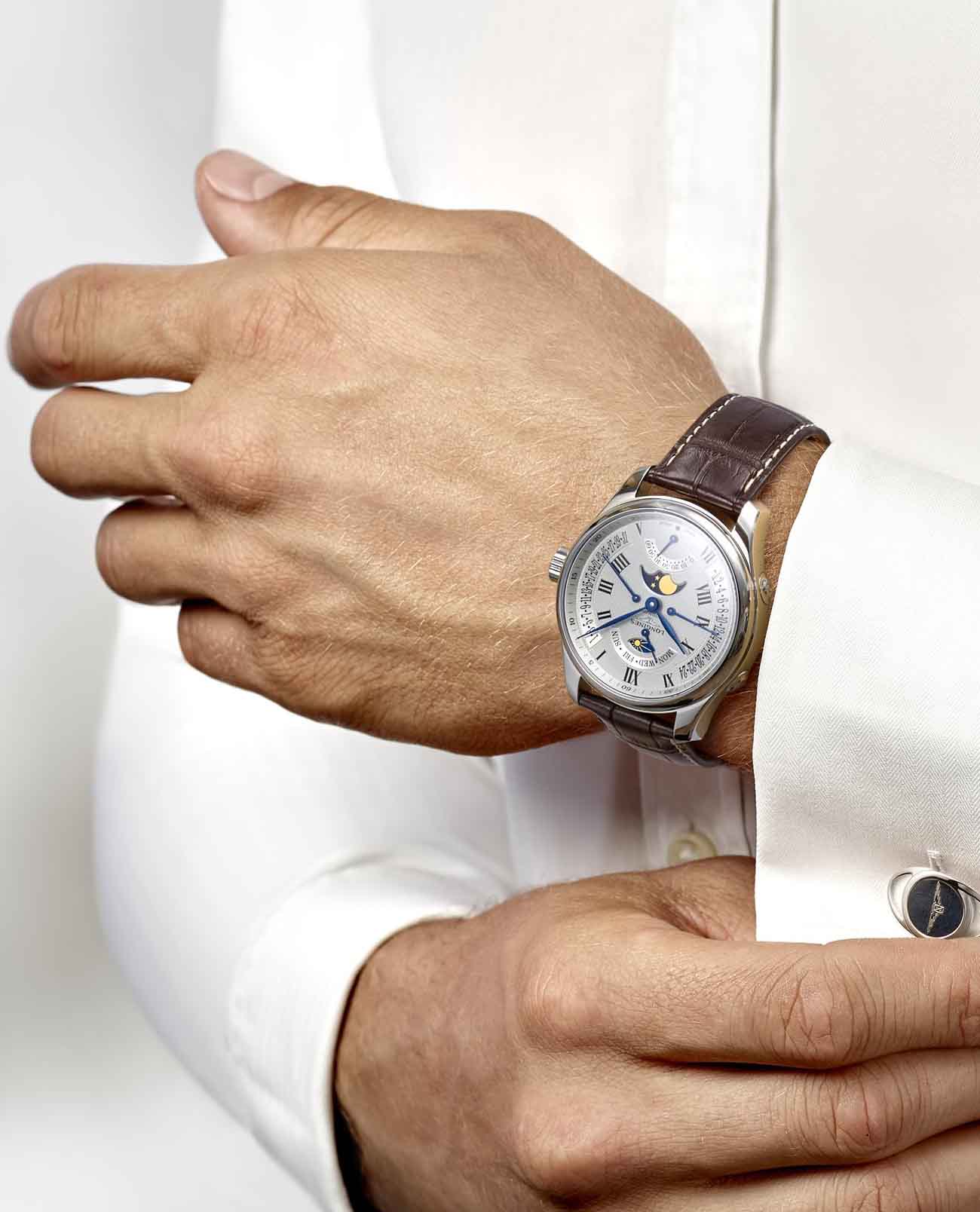 Циферблат выполнен в винтажном стиле. Он дополнен римскими цифрами и полезными счётчиками: отображение лунных фаз, индикатор день/ночь, календарь. Швейцарский автоматический калибр L707 характеризуется запасом хода на 48 часов и обеспечивает высокую точность данных. Понаблюдать за работой деталей позволяет прозрачная задняя крышка.