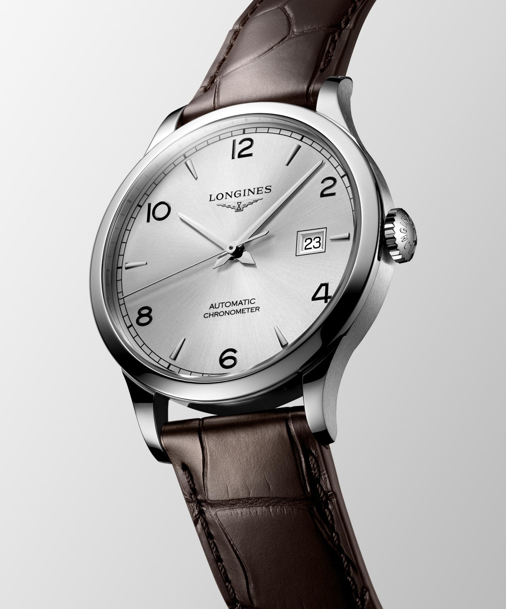 Серебристый циферблат с арабскими цифрами отражает классический стиль. Швейцарский автоматический механизм L888.4 отличается 64-часовым запасом хода, он оснащён уникальной монокристаллической кремниевой спиралью. Точность хода калибра подтверждена сертификатом хронометра COSCСертификат COSCОфициальный сертификат, подтверждающий то, что часы ходят с особо высокой точностью. Для получения документа часы подвергаются тестовым испытаниям, разработанным швейцарским институтом тестирования хронометров COSC. Допустимая норма для механических часов -4/+6 секунд в день, для кварцевых моделей +/- 0,07 секунд в день.. Стекло из сапфира дополнено многослойным антибликовым покрытиемАнтибликовое покрытиеСлой оксида металла в 0,13-0,3 микрон, благодаря которому стекло часов не бликует и не отражает свет. Антибликовое покрытие уменьшает отражение света в 10 раз, обеспечивая отличную читаемость показателей циферблата..