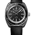 Циферблат выполнен в строгом антрацитовом цвете с матовой текстурой, что обеспечивает отличную читаемость даже при ярком свете. Часовые метки представлены точками и штрихами, а стрелки выполнены в форме Baton, что подчеркивает спортивный стиль модели.