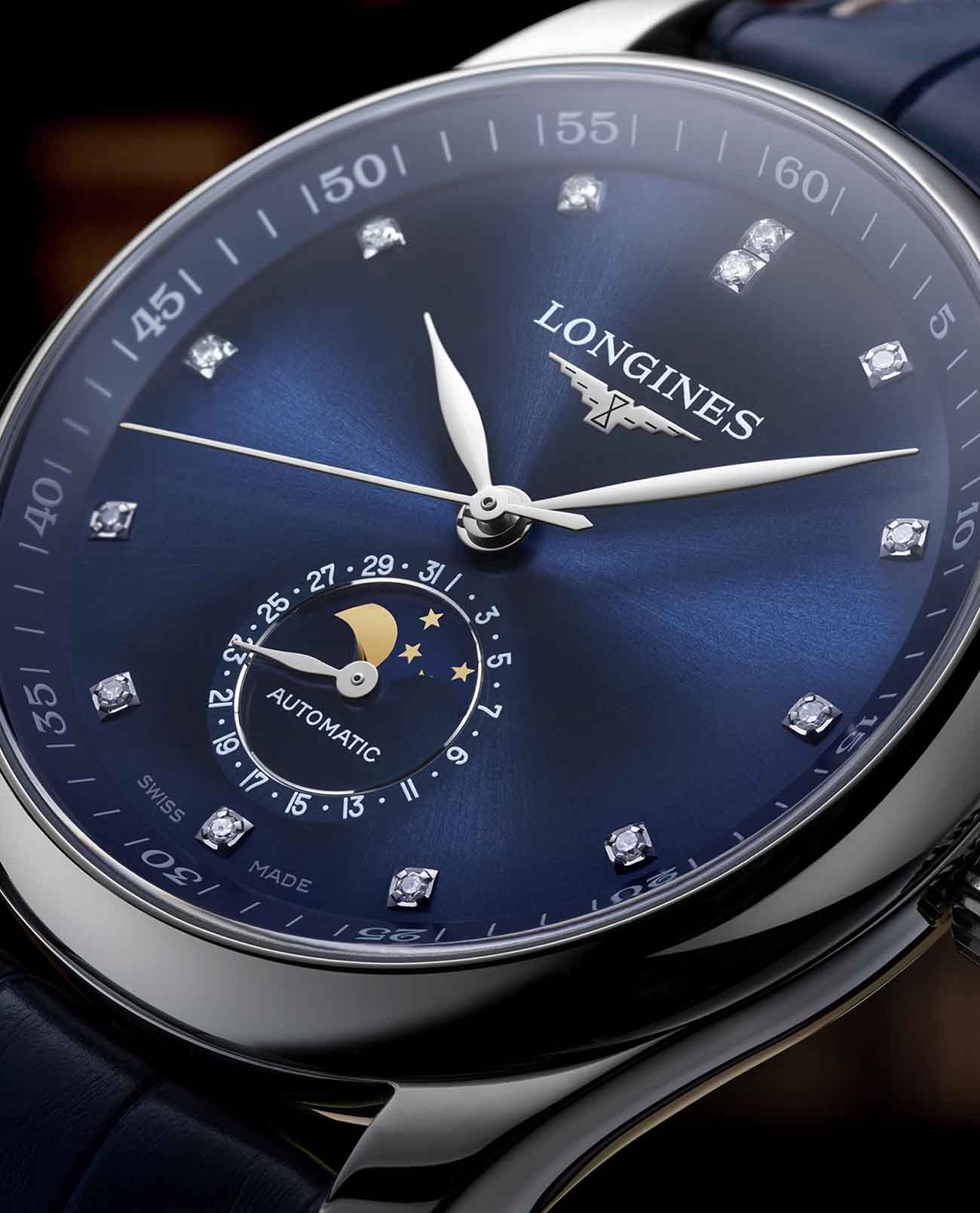 Серебристый циферблат выполнен в классическом стиле и украшен 13 бриллиантами в 0,053 карат. Швейцарский автоматический механизм L899 с запасом хода на 64 часа надёжно защищён корпусом из нержавеющей стали 316L. Элегантный браслет выполнен из нержавеющей стали 316L. Сапфировое стекло устойчиво к царапинам. Функции: индикация лунных фаз.