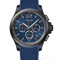 Синий ремешок из каучука стильно смотрится на запястье. Швейцарский кварцевый механизм L289 демонстрирует абсолютную точность хода. Устойчивое к царапинам сапфировое стекло имеет антибликовое покрытиеАнтибликовое покрытиеСлой оксида металла в 0,13-0,3 микрон, благодаря которому стекло часов не бликует и не отражает свет. Антибликовое покрытие уменьшает отражение света в 10 раз, обеспечивая отличную читаемость показателей циферблата.. Функции: вечный календарь, индикатор EOLEOLПредставляет собой систему, уведомляющую владельца часов о необходимости замены элемента питания. За 2 недели до полного разряда батарейки секундная стрелка перестаёт ходить чётко и начинает перепрыгивать на 3-4 деления., хронограф.