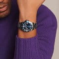 Особое внимание стоит уделить вращающемуся стальному безелюБезельВнешний ободок, закрепляющий стекло. В спортивных часах так называется поворотное кольцо с делениями на циферблате, выполняет роль таймера – замеряет отрезки времени на шкале. Неподвижный безель – элемент декора. Однонаправленно вращающийся безель на дайверских часах позволяет фиксировать моменты погружения и выныривания на поверхность. с люминесцентным покрытием Superluminova. Этот элемент не только служит для определения времени, но и добавляет часам уникальный шарм. Люминесцентное покрытие, которое никогда не выцветает и не изнашивается, обеспечивает легкость считывания времени даже в условиях низкой освещенности.