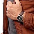 Дополнительные особенности включают сапфировое стеклоСапфировое стеклоПрочный и надёжный материал из кристалла сапфира синтетического происхождения, характеризующийся особой твёрдостью и устойчивостью к царапинам и повреждениям. с двухсторонним антибликовым покрытиемАнтибликовое покрытиеСлой оксида металла в 0,13-0,3 микрон, благодаря которому стекло часов не бликует и не отражает свет. Антибликовое покрытие уменьшает отражение света в 10 раз, обеспечивая отличную читаемость показателей циферблата., что обеспечивает идеальную видимость циферблата в любых условиях. Стрелки и метки с люминесцентнымЛюминесцентное покрытиеПозволяет считывать показания времени в темноте. Производители наносят на стрелки, часовые индексы, безель или поверхность циферблата светонакопительный состав, дающий холодное свечение. покрытием облегчают чтение времени даже в темноте. Окошко даты удобно расположено на отметке 3 часа. Часы обладают классом водозащиты 100 метров, что позволяет использовать их для плавания и занятий водными видами спорта. Кожаный ремешок на стандартной застежке придает часам классический и элегантный вид.