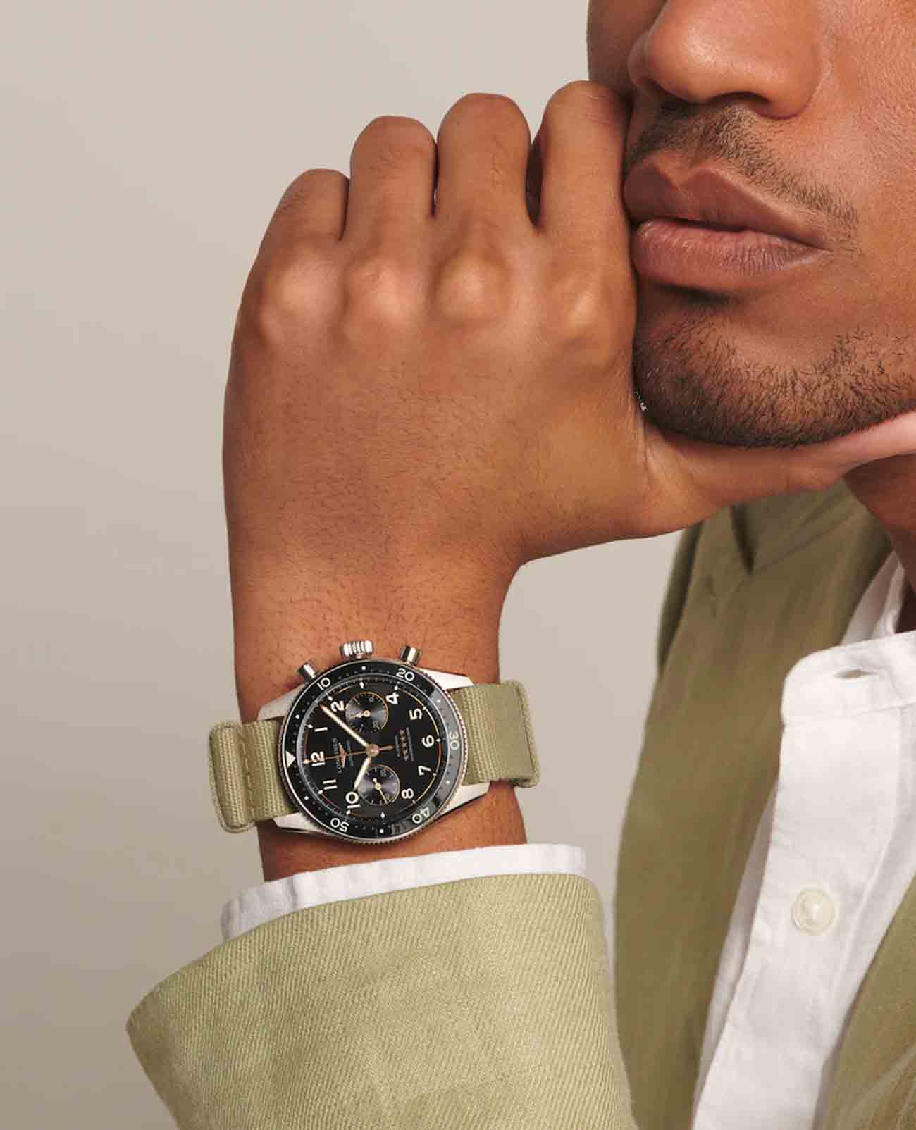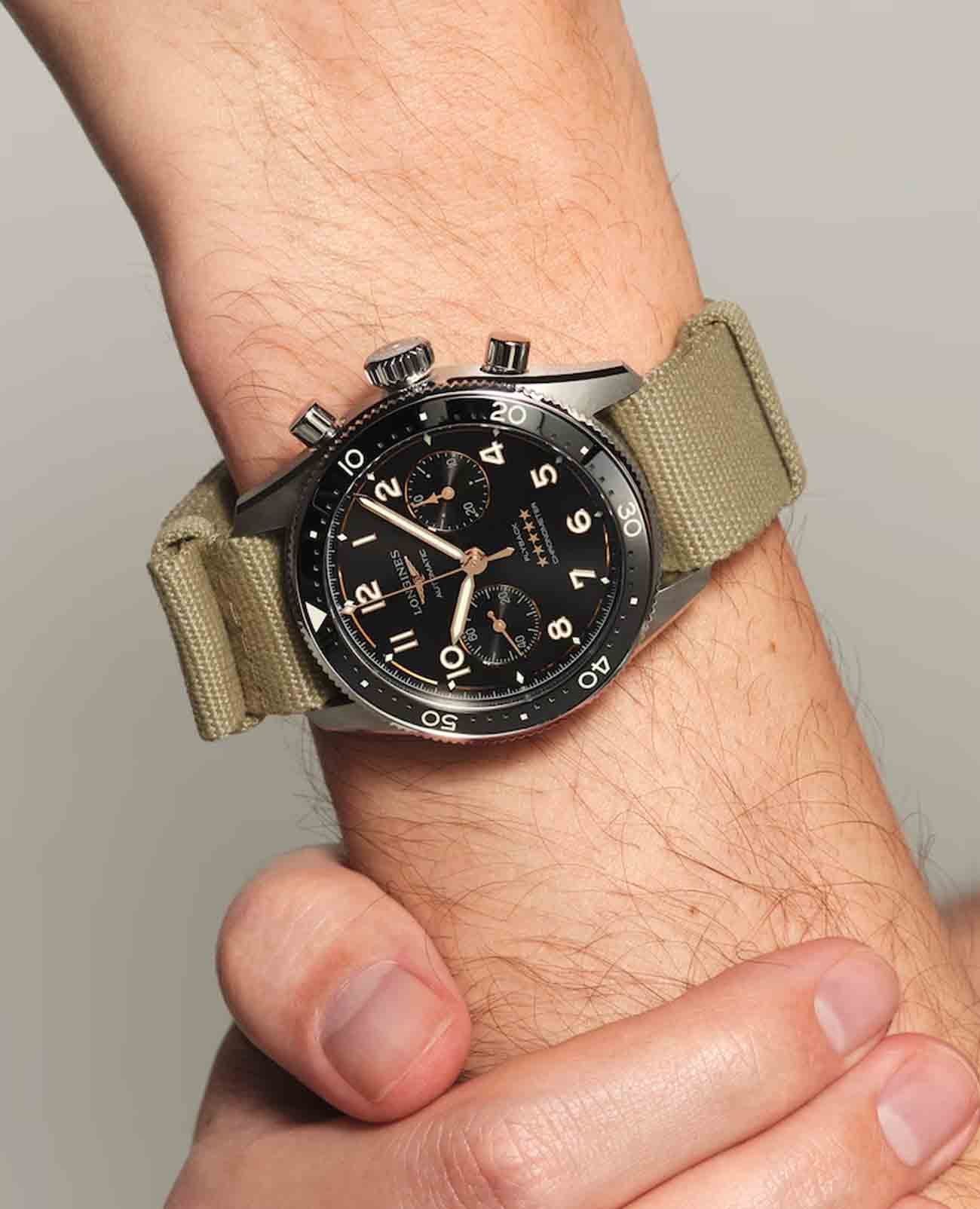 Мужские швейцарские механические часы Longines Spirit L3.821.4.53.9 – высокоточный хронометр в стильном дизайне. Спортивный хронографХронографФункция позволяет измерять отрезки времени с особой точностью: часы, минуты, секунды. Верным признаком хронографа является наличие на циферблате 3 дополнительных окошек-счётчиков. выпущен в честь известных авиаторов, которые раньше тестировали часы Longines. Модель оснащена швейцарским автоматическим механизмом, чрезвычайно точный механизм с запасом хода 68 часов сертифицирован COSCСертификат COSCОфициальный сертификат, подтверждающий то, что часы ходят с особо высокой точностью. Для получения документа часы подвергаются тестовым испытаниям, разработанным швейцарским институтом тестирования хронометров COSC. Допустимая норма для механических часов -4/+6 секунд в день, для кварцевых моделей +/- 0,07 секунд в день.. Дополнительные особенности: сапфировое стеклоСапфировое стеклоПрочный и надёжный материал из кристалла сапфира синтетического происхождения, характеризующийся особой твёрдостью и устойчивостью к царапинам и повреждениям. с двухсторонним антибликовым покрытиемАнтибликовое покрытиеСлой оксида металла в 0,13-0,3 микрон, благодаря которому стекло часов не бликует и не отражает свет. Антибликовое покрытие уменьшает отражение света в 10 раз, обеспечивая отличную читаемость показателей циферблата., люминесцентная подсветкаЛюминесцентное покрытиеПозволяет считывать показания времени в темноте. Производители наносят на стрелки, часовые индексы, безель или поверхность циферблата светонакопительный состав, дающий холодное свечение.. Он оснащен двунаправленным безелемБезельВнешний ободок, закрепляющий стекло. В спортивных часах так называется поворотное кольцо с делениями на циферблате, выполняет роль таймера – замеряет отрезки времени на шкале. Неподвижный безель – элемент декора. Однонаправленно вращающийся безель на дайверских часах позволяет фиксировать моменты погружения и выныривания на поверхность., дополненным керамической вставкой с люминесцентнымЛюминесцентное покрытиеПозволяет считывать показания времени в темноте. Производители наносят на стрелки, часовые индексы, безель или поверхность циферблата светонакопительный состав, дающий холодное свечение. метками и циферблатом в виде солнечных лучей. Класс водозащиты: 100 метров, позволит плавать, нырять и заниматься другими водными видами спорта. Текстильный ремешок на стандартной застежке.