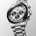 Мужские швейцарские механические часы- хронографХронографФункция позволяет измерять отрезки времени с особой точностью: часы, минуты, секунды. Верным признаком хронографа является наличие на циферблате 3 дополнительных окошек-счётчиков. Longines Conquest L3.835.4.72.6. Сапфировое стеклоСапфировое стеклоПрочный и надёжный материал из кристалла сапфира синтетического происхождения, характеризующийся особой твёрдостью и устойчивостью к царапинам и повреждениям. с многослойным антибликовым покрытием с обеих сторон, устойчивое к появлению царапин, обладающее высокой прозрачностью. Корпус часов изготовлен из стали. Неподвижный безельБезельВнешний ободок, закрепляющий стекло. В спортивных часах так называется поворотное кольцо с делениями на циферблате, выполняет роль таймера – замеряет отрезки времени на шкале. Неподвижный безель – элемент декора. Однонаправленно вращающийся безель на дайверских часах позволяет фиксировать моменты погружения и выныривания на поверхность. из стали и керамики, защищенный от царапин, никогда не изнашивается и не выцветает. Шкала тахиметраТахиметрРазмеченная шкала, располагается на ободке или безеле часов. Тахиметр позволяет рассчитать скорость на определённом участке пути, расстояние измеряется в километрах или милях.. На циферблате расположены три дополнительных циферблата. Стрелки и метки с люминесцентным покрытиемЛюминесцентное покрытиеПозволяет считывать показания времени в темноте. Производители наносят на стрелки, часовые индексы, безель или поверхность циферблата светонакопительный состав, дающий холодное свечение.. Класс водозащиты: 100 метров, позволит плавать, нырять и заниматься другими водными видами спорта. Стальной браслет на раскладной застёжкеРаскладная застёжкаТакой тип застёжки используется только на браслетах из металла. Она никогда не раскрывается полностью, происходит разделение на 2 и более частей. Раскладывающая застёжка снизит вероятность потери часов к минимуму..